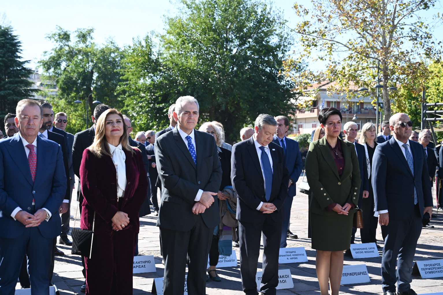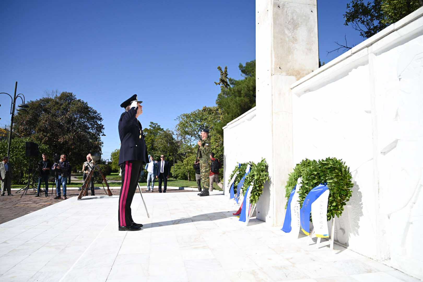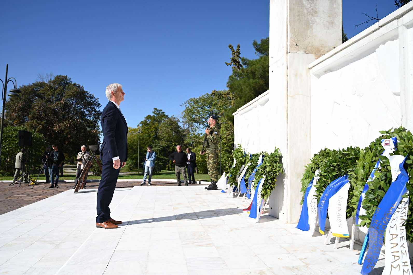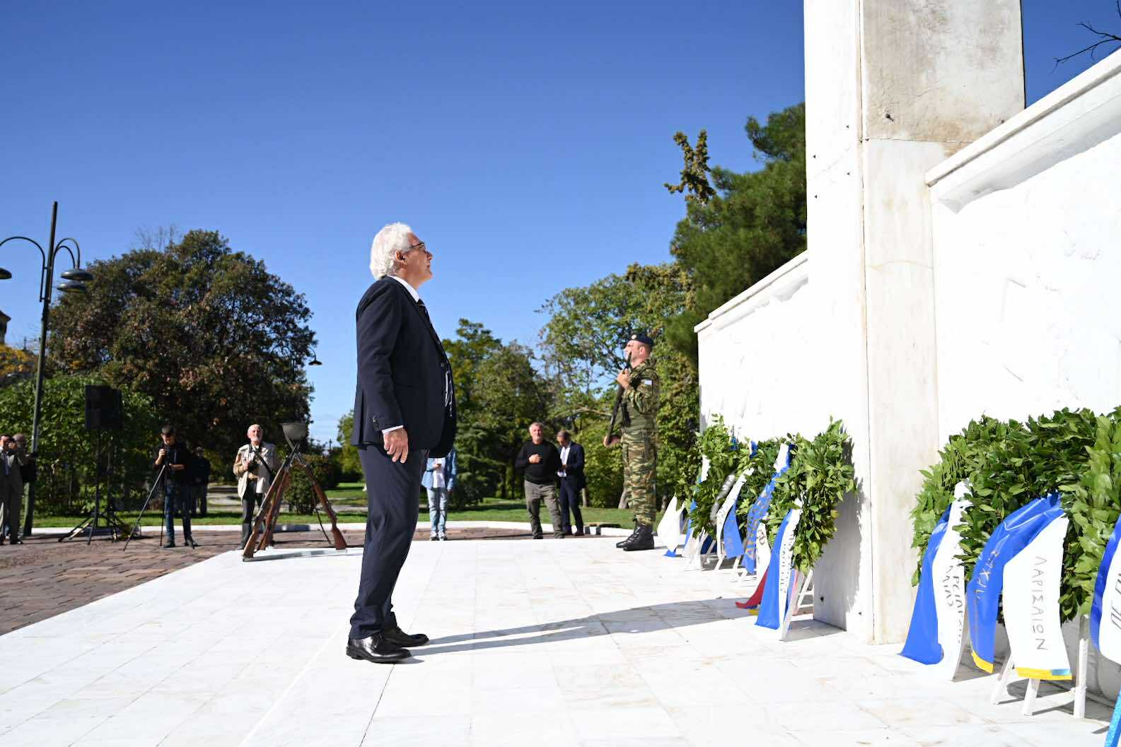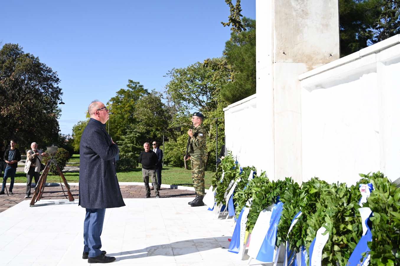 Μετά τη δοξολογία στον Άγιο Αχίλλιο, στο πλαίσιο των εορταστικών εκδηλώσεων για την 28η Οκτωβρίου, τελέσθηκε επιμνημόσυνη δέηση στο Ηρώο της πόλης και κατάθεση στεφάνων από ανώτατες πολιτικές και στρατιωτικές αρχές, εφεδροπολεμιστικές οργανώσεις και εκπροσώπους της Εθνικής Αντίστασης όλων των παραρτημάτων των αναγνωρισμένων αντιστασιακών οργανώσεων.