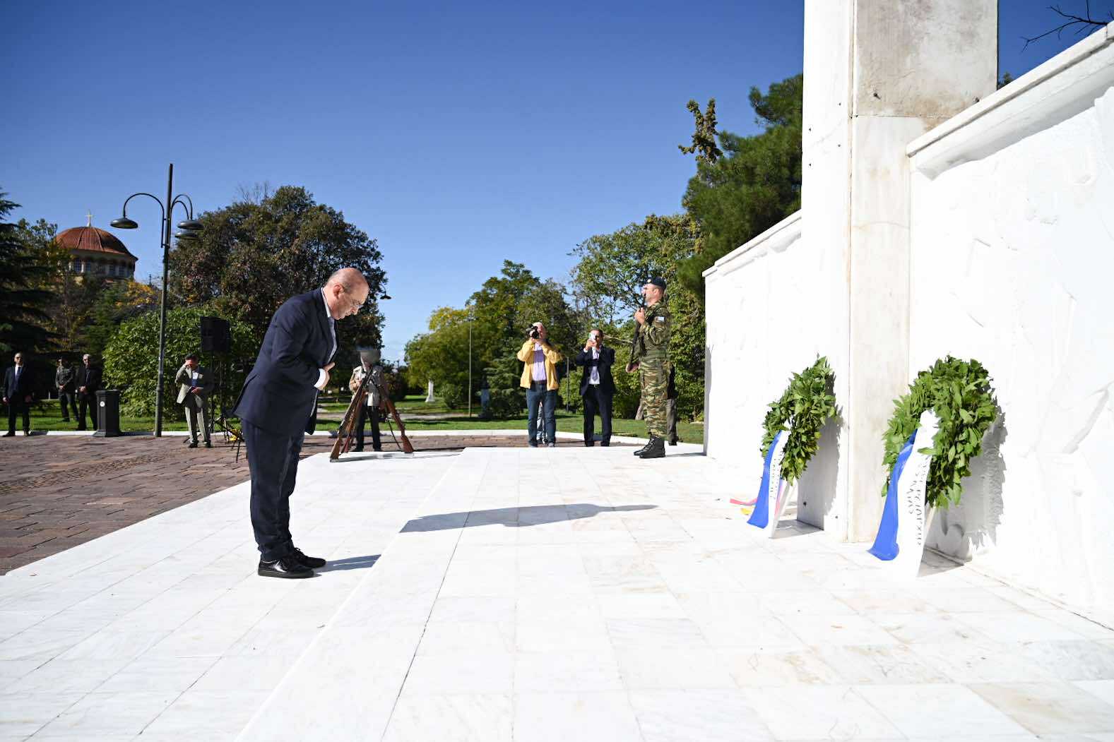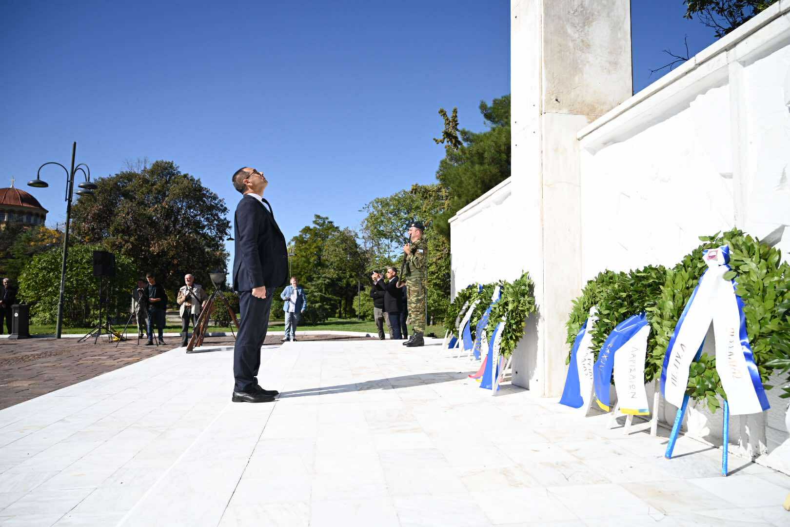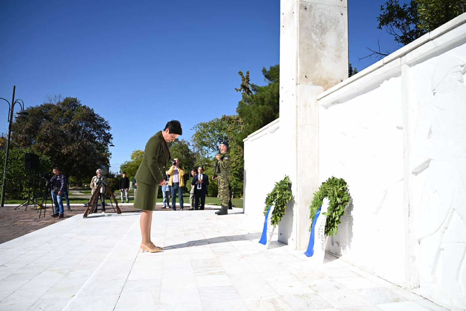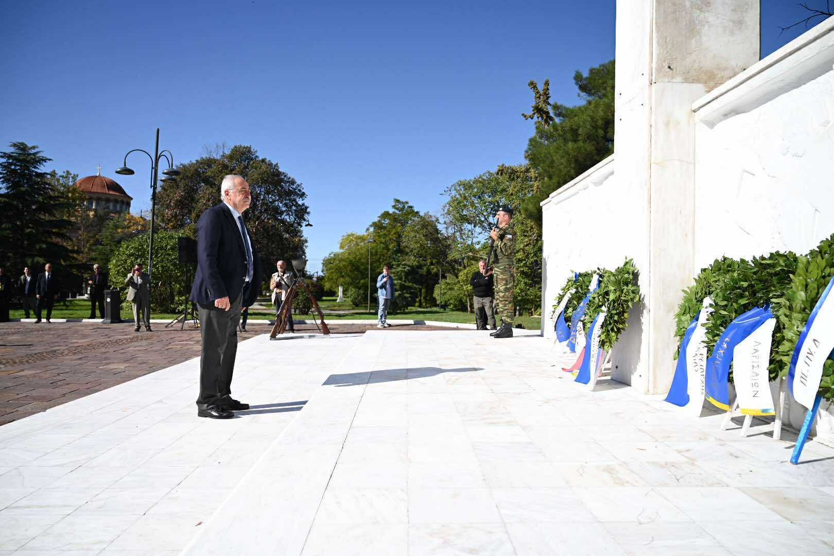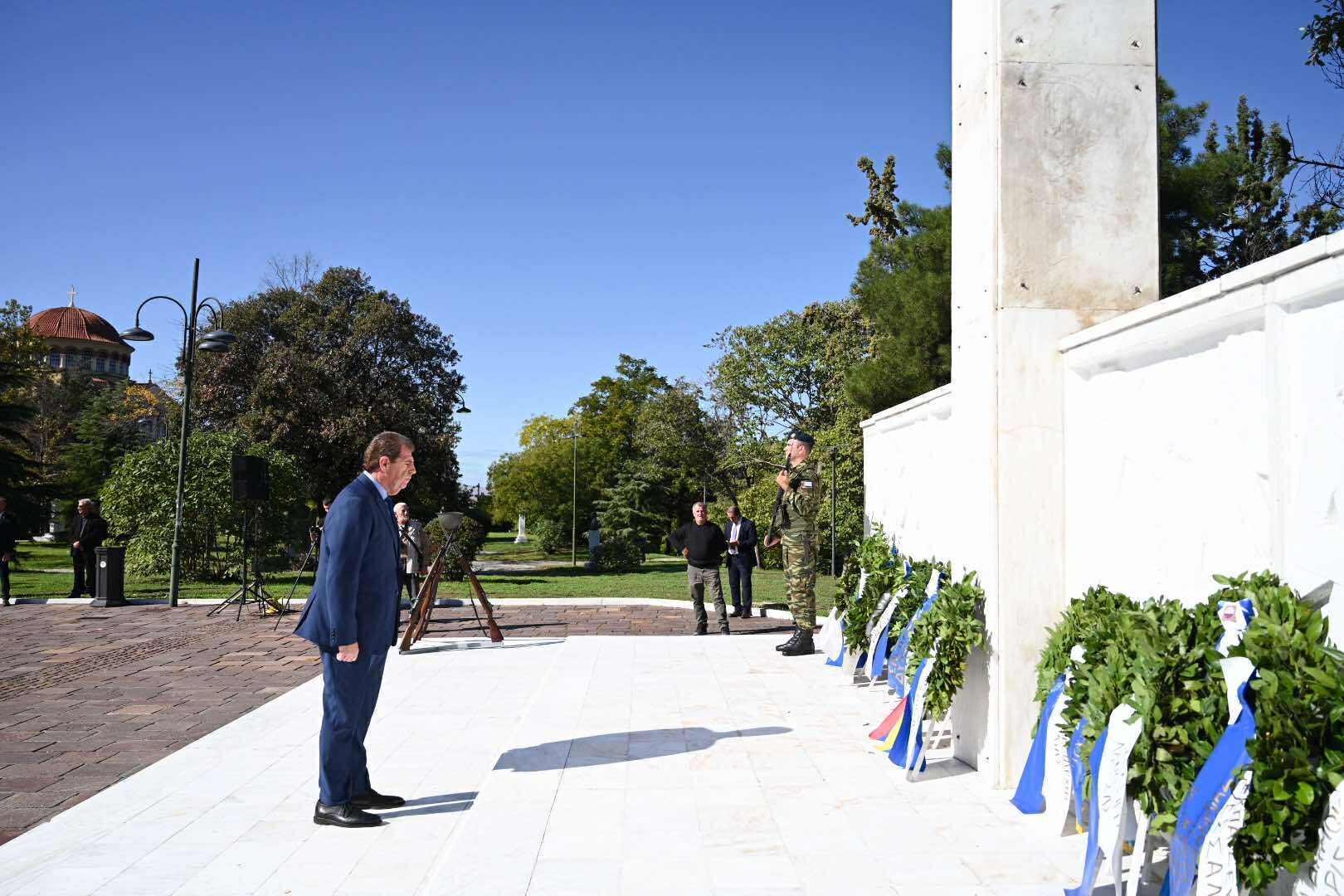 Μετά τη δοξολογία στον Άγιο Αχίλλιο, στο πλαίσιο των εορταστικών εκδηλώσεων για την 28η Οκτωβρίου, τελέσθηκε επιμνημόσυνη δέηση στο Ηρώο της πόλης και κατάθεση στεφάνων από ανώτατες πολιτικές και στρατιωτικές αρχές, εφεδροπολεμιστικές οργανώσεις και εκπροσώπους της Εθνικής Αντίστασης όλων των παραρτημάτων των αναγνωρισμένων αντιστασιακών οργανώσεων.