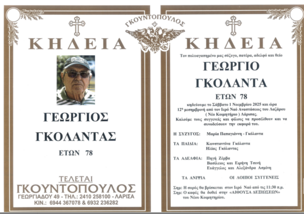 Η Δ.Ε.Υ.Α.Λ. ανακοινώνει ότι τη Δευτέρα, 3 Νοεμβρίου για το χρονικό διάστημα από 09:00 έως 13:00 θα πραγματοποιηθεί διακοπή υδροδότησης στις παρακάτω οδούς: