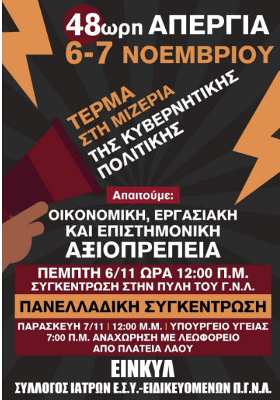 Οι Λαρισαίοι γιατροί θα συμμετέχουν στην 48ωρη απεργία στις 6 και 7 Νοεμβρίου, απαιτώντας οικονομική, εργασιακή και επιστημονική αξιοπρέπεια.