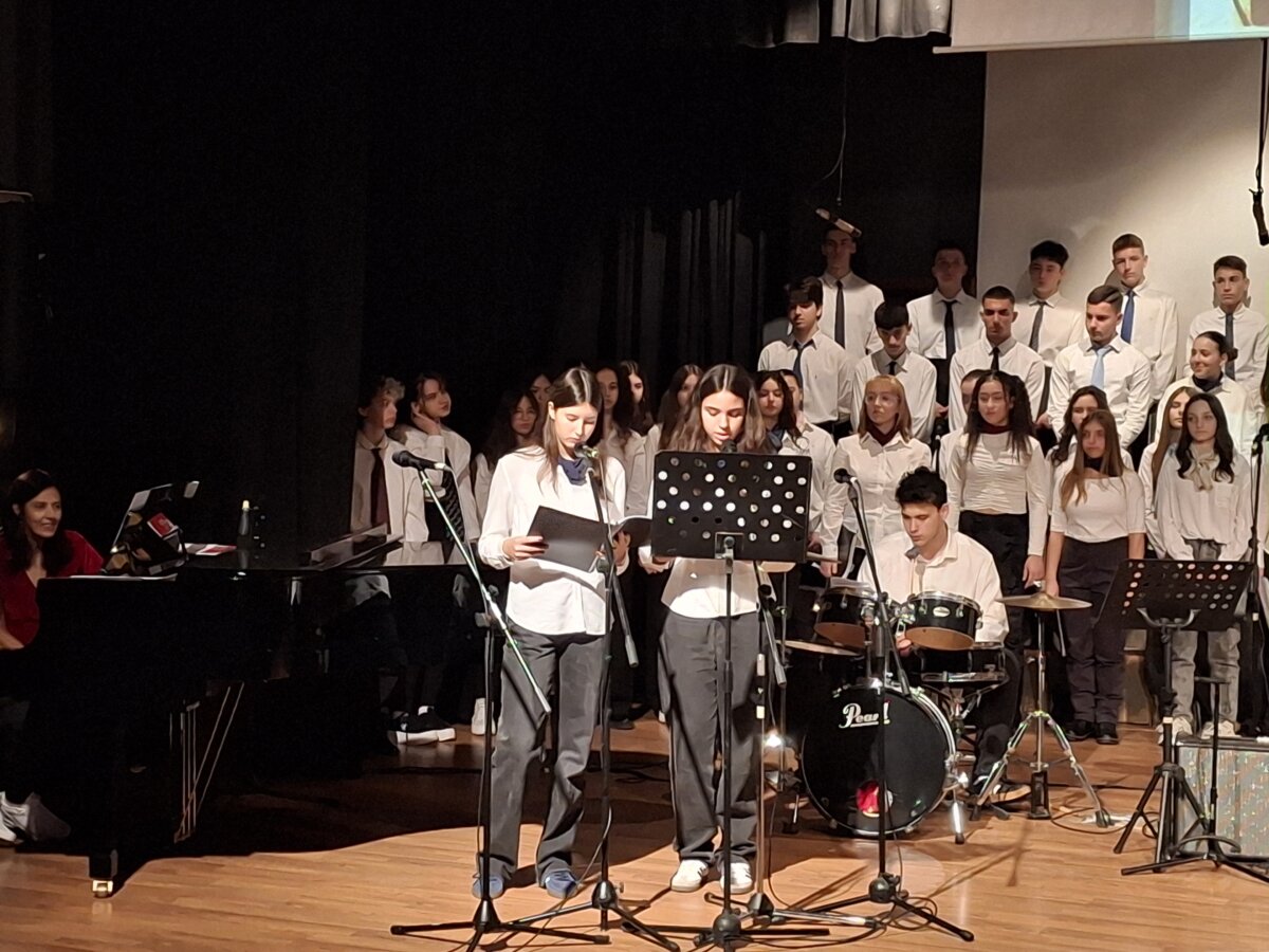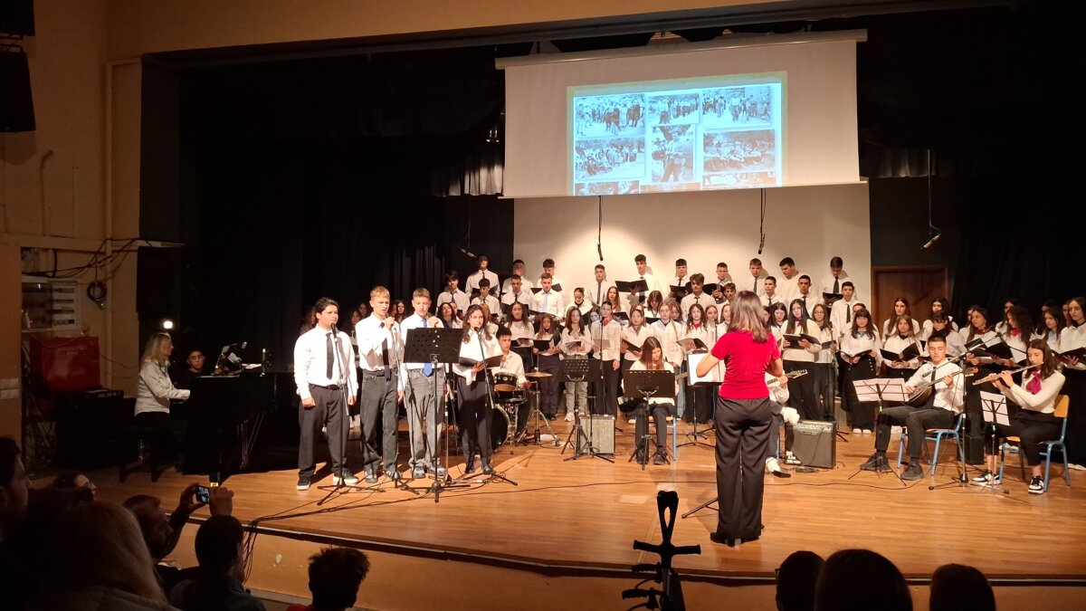 Η εορτή ξεκίνησε με τους κατανυκτικούς Θεομητορικούς ύμνους που απέδωσαν οι μαθητές του τμήματος Γ1 Γυμνασίου, υπό τη διεύθυνση της κ. Βρούζου Δήμητρας (ΠΕ 79.01), φωτίζοντας το πνευματικό μήνυμα της ημέρας της Αγίας Σκέπης. Οι φωνές των παιδιών αντήχησαν γλυκά, προετοιμάζοντας το κοινό για το ταξίδι μνήμης που θα ακολουθούσε.