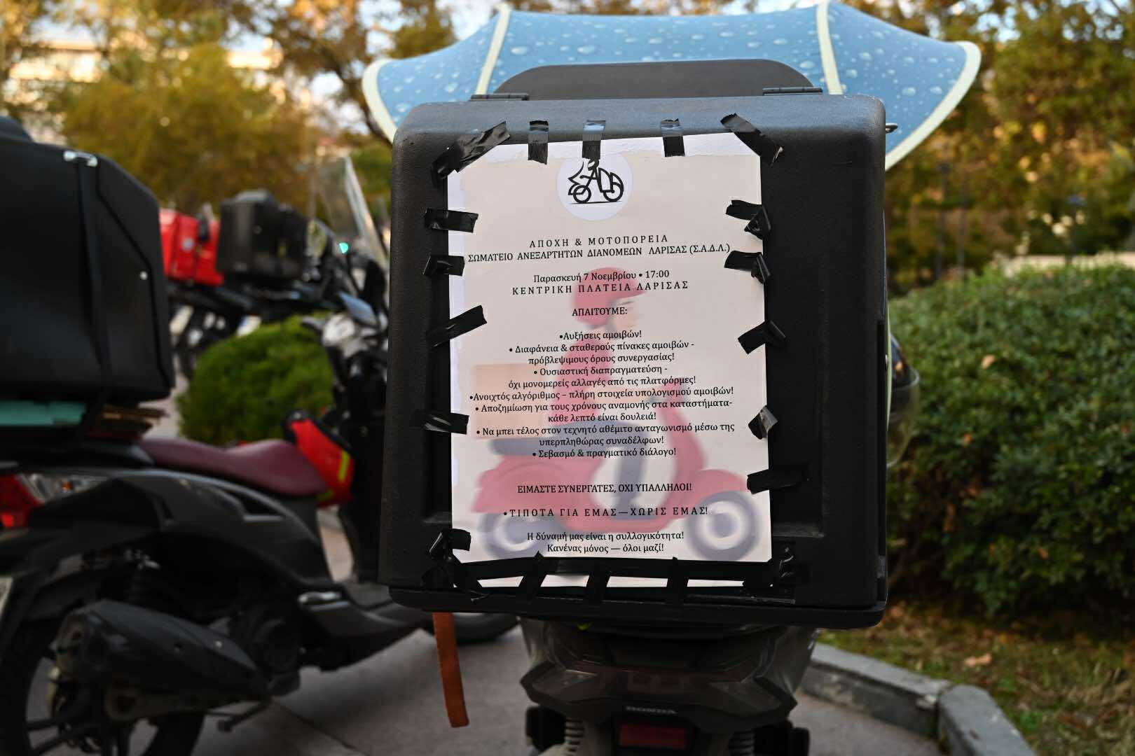 Στους δρόμους της Λάρισας βγήκαν το απόγευμα της Παρασκευής οι διανομείς προχωρώντας σε αποχή από όλες τις πλατφόρμες (efood,wolt, box), διεκδικώντας δίκαιους, σταθερούς και διαφανείς όρους συνεργασίας.