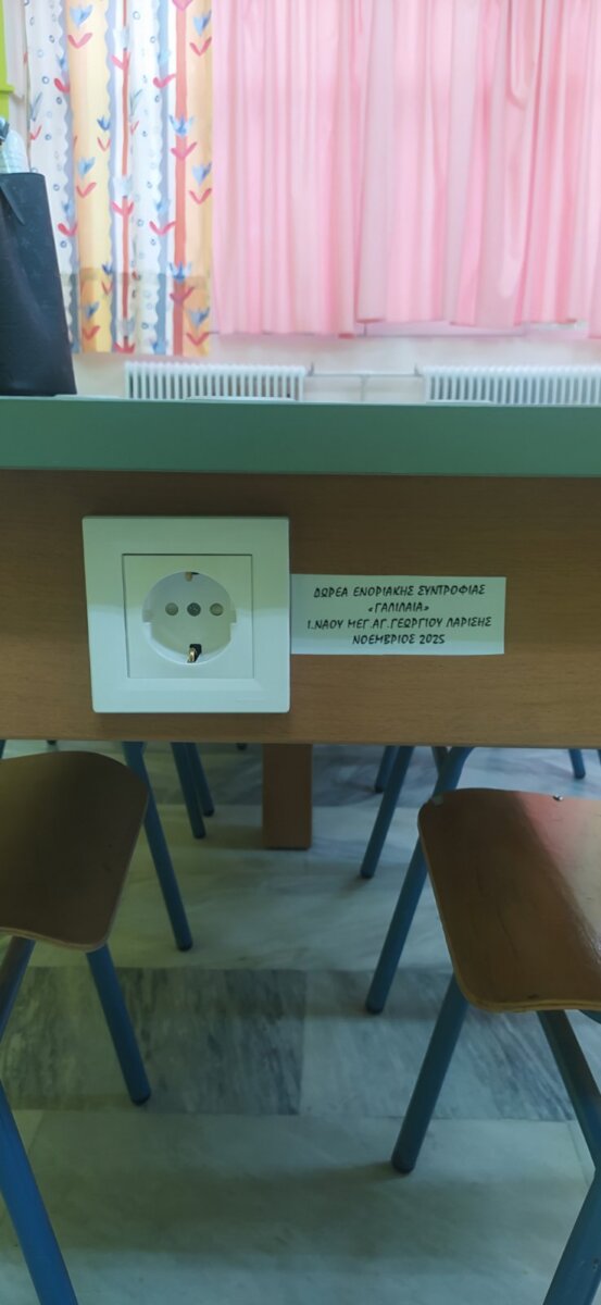 “Δύο σύγχρονοι ολοκαίνουργιοι πάγκοι εργασίας όπου μπορούν να εργαστούν 40 μαθητές/τριες και ένα ψυγείο για τη συντήρηση των αναγκαίων υλικών, μεταμόρφωσαν το εργαστήριο φυσικών επιστημών σε ένα χώρο που περιλαμβάνει από χθες και τη δωρεά της Ενοριακής Συντροφιάς «Γαλιλαία» του Ιερού Ναού Αγίου Γεωργίου Λάρισας!