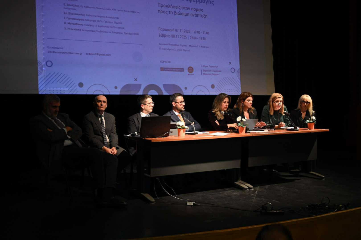 Με επιτυχία ολοκληρώθηκε απόψε στη Λάρισα η διήμερης επιστημονική διημερίδα με θέμα «Άρθρο 24 Συντάγματος: 50 χρόνια εφαρμογής. Προκλήσεις στην πορεία προς τη βιώσιμη ανάπτυξη», που διοργάνωσαν η Ελληνική Εταιρεία Δικαίου του Περιβάλλοντος (ΕΕΔΠ) και η Επιστημονική Εταιρεία Δικαίου Πολεοδομίας και Χωροταξίας (ΕΕΔΙΠΟΧ), στην αίθουσα της Δημοτικής Πινακοθήκης Λάρισας – Μουσείο Γ. Ι. Κατσίγρα.