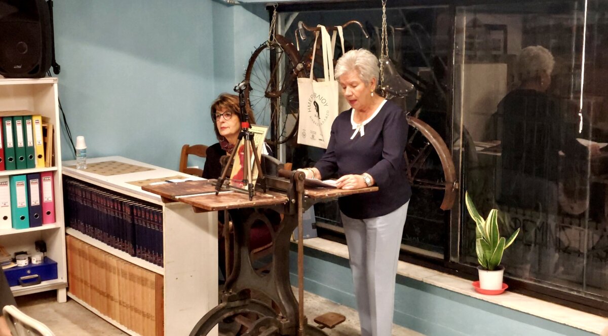Ο χώρος του παλιού βιβλιοπωλείου αποδείχθηκε πολύ ζεστός, μ’ ένα σκηνικό μοναδικό, με τη μυρωδιά του χαρτιού να είναι χαρακτηριστική και τους ανθρώπους που αγαπούν τα μικρά βιβλιοπωλεία να πλαισιώνουν την εκδήλωση.