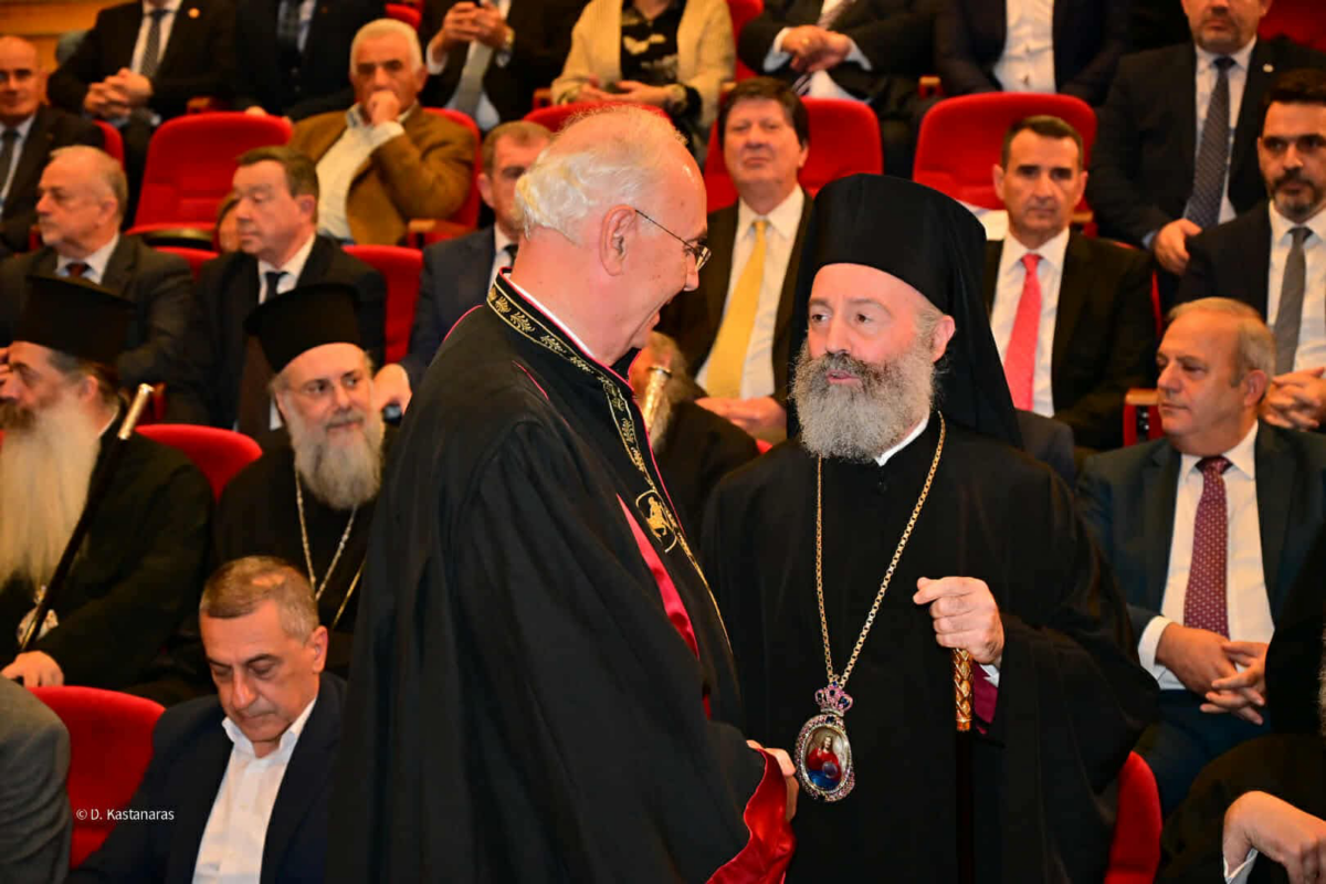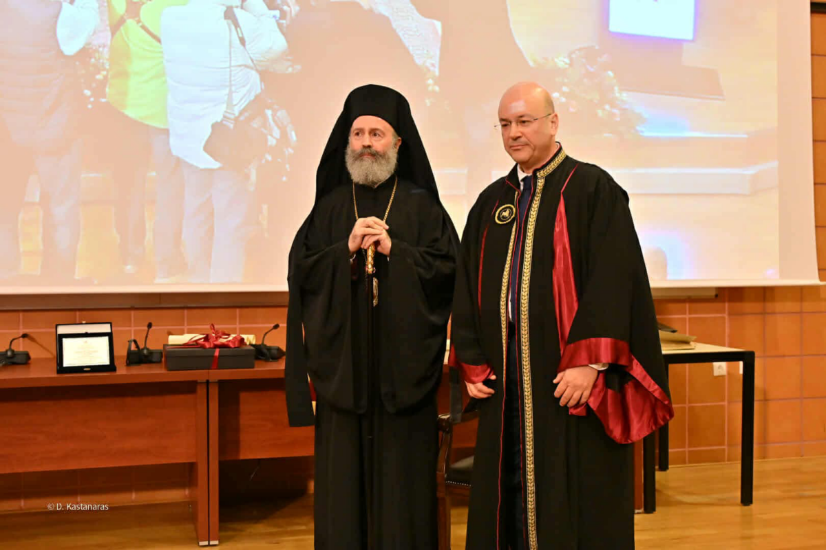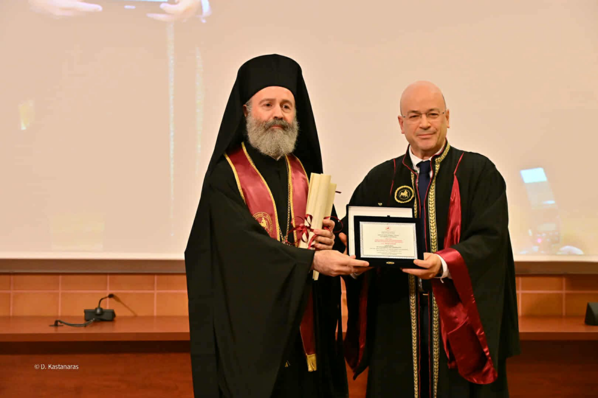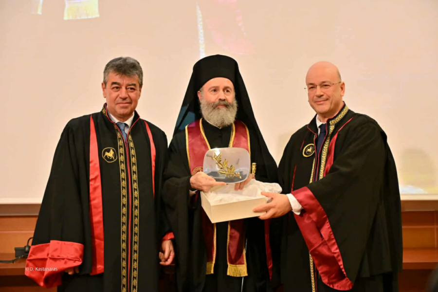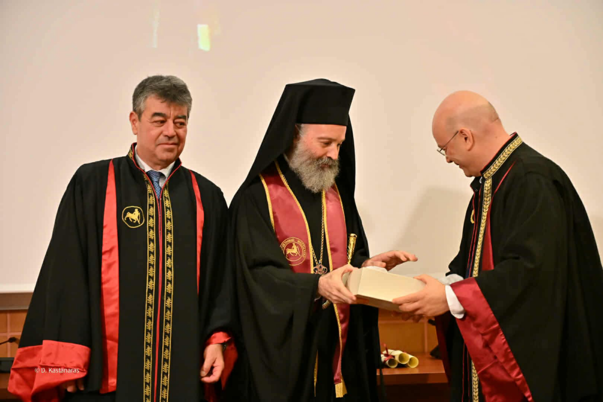Σε μια ιδιαίτερα συγκινητική και λαμπρή τελετή, που πραγματοποιήθηκε απόψε στο Αμφιθέατρο «Ιπποκράτης» στη Βιόπολη Λάρισας, το Τμήμα Ιατρικής της Σχολής Επιστημών Υγείας του Πανεπιστημίου Θεσσαλίας αναγόρευσε Επίτιμο Διδάκτορα τον Σεβασμιώτατο Αρχιεπίσκοπο Αυστραλίας και πάσης Ωκεανίας κ.κ. Μακάριο.