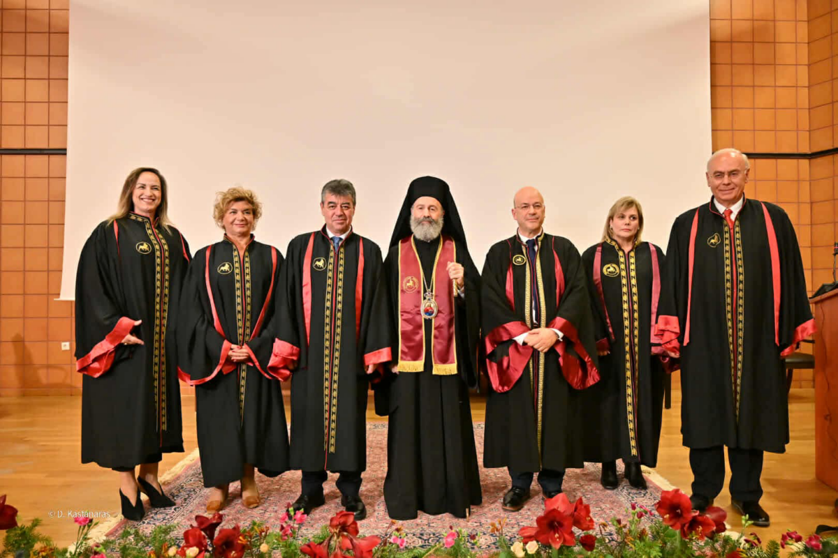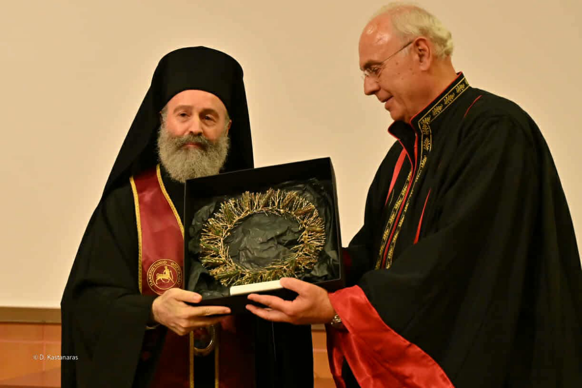 «Αποτελεί ιδιαίτερη τιμή για το Πανεπιστήμιο Θεσσαλίας η απονομή του υψηλού τίτλου του Επίτιμου Διδάκτορα του Τμήματος Ιατρικής. Ο Σεβασμιώτατος αποτελεί μια προσωπικότητα με παγκόσμιο αποτύπωμα, που συνδέει την πνευματικότητα με την επιστήμη και τη σύγχρονη κοινωνία».