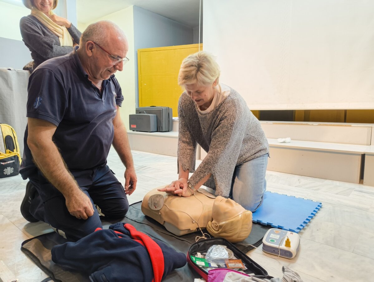 Οι Σύλλογοι, στα πλαίσια πάντα της εθελοντικής, μη αμειβόμενης και ανιδιοτελούς προσφοράς στους κατοίκους της πόλης μας, έδωσαν την δυνατότητα σε κατοίκους του Αμπελώνα και όχι μόνο, να εκπαιδευτούν σε θεματικές ενότητες για Πρώτες Βοήθειες (Αιμορραγίες – Εγκαύματα – Λιποθυμίες – Πνιγμό) και Καρδιοαναπνευστική Αναζωογόνηση (ΚΑΡΠΑ), με χρήση εξωτερικού Απινιδωτή.