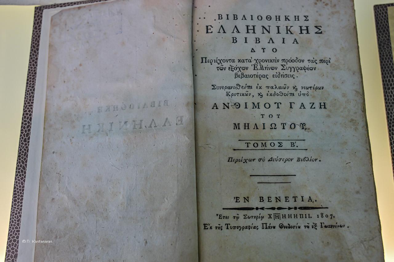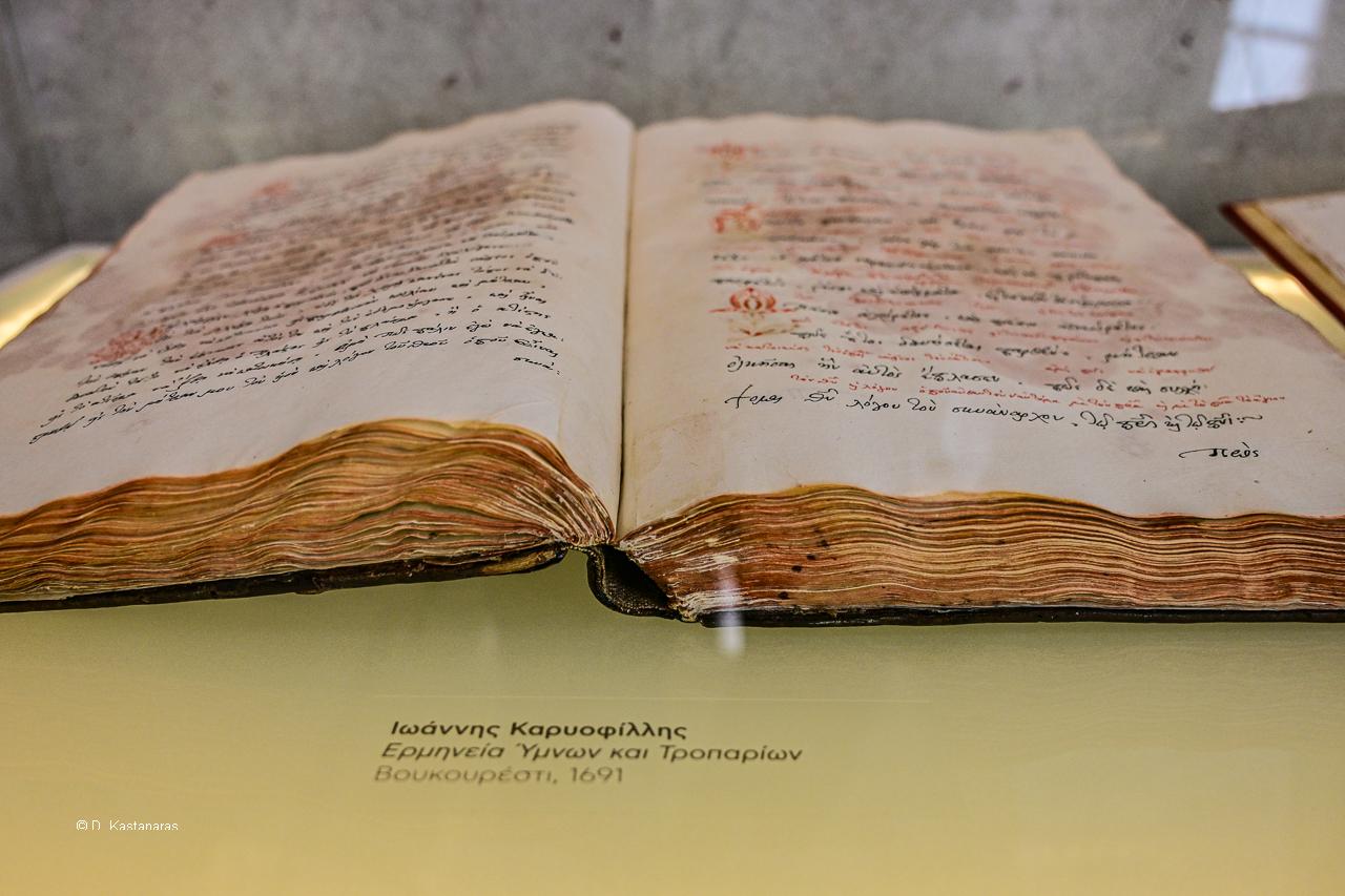 Ατέλειωτες ιστορίες και… μυρωδιές συνοδεύουν την ξενάγηση, με βιβλία, συγγράμματα και χειρόγραφα να διηγούνται τη δικιά τους πορεία στον χρόνο, ενώ ένα σπάνιο χειρόγραφο («Έκθεσις περί Ποιητικής», του Αφθονίου Σοφιστού) που κλάπηκε την περίοδο της γερμανικής κατοχής και εντοπίστηκε χρόνια μετά κάπου στην Αυστρία «επαναπατρίστηκε» και εκτίθεται στη βιβλιοθήκη, παράλληλα με την αλληλογραφία που αναπτύχθηκε τη δεκαετία του ’50 με τον δρ. Berthold O. Gernik, αρχειοφύλακα και βιβλιοθηκάριο του Ιδρύματος Βιβλιοθήκης Klosterneuburg, για την επιστροφή του.