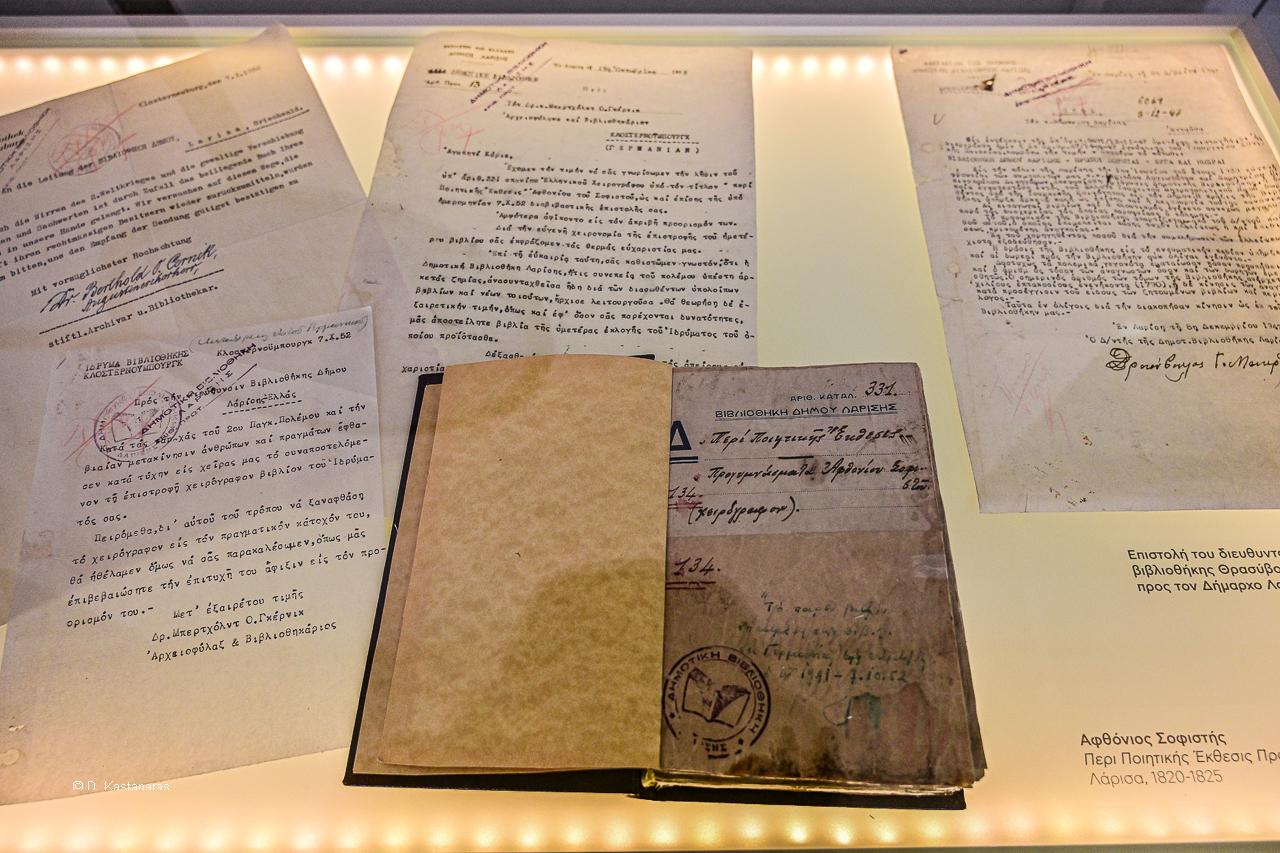 «Τη βάση της συλλογής της Βιβλιοθήκης αποτέλεσαν τρεις σημαντικές δωρεές: Η δωρεά Δ. Πιπινόπουλου, η δωρεά Χαρ. Λογιωτάτου και η δωρεά του Ομίλου Διανοουμένων Λάρισας, με σύνολο 1.800 βιβλίων, ενώ ο επισκέπτης μπορεί να δει και τον πρώτο κατάλογο των βιβλίων που είχε στη διάθεσή της η βιβλιοθήκη το 1939 (δ/ντής Θρ. Μακρής). Από τότε η συλλογή μας όχι μόνο εμπλουτίστηκε μα και ψηφιοποιήθηκε ώστε να είναι δωρεάν προσβάσιμη σε κάθε ενδιαφερόμενο», προσθέτει καθώς μας ξεναγεί στους χώρους,