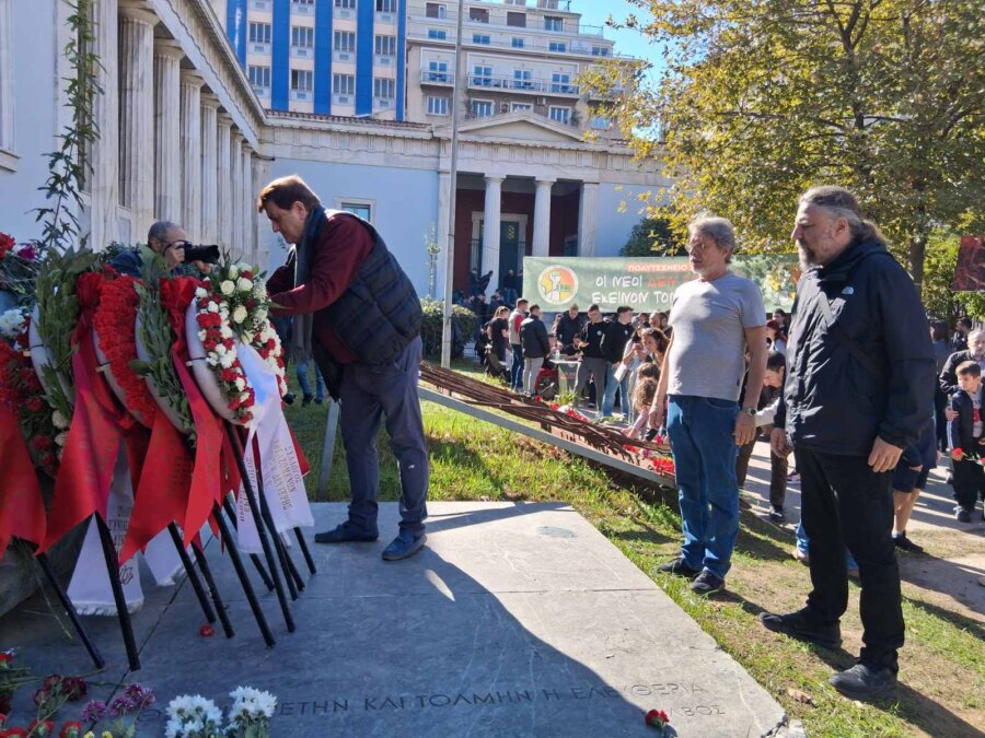 Το Σάββατο 15 Νοεμβρίου αντιπροσωπεία της ΟΛΜΕ κατέθεσε στεφάνι στο Πολυτεχνείο ενόψει του εορτασμού της εξέγερσης, το Νοέμβριο του 1973.