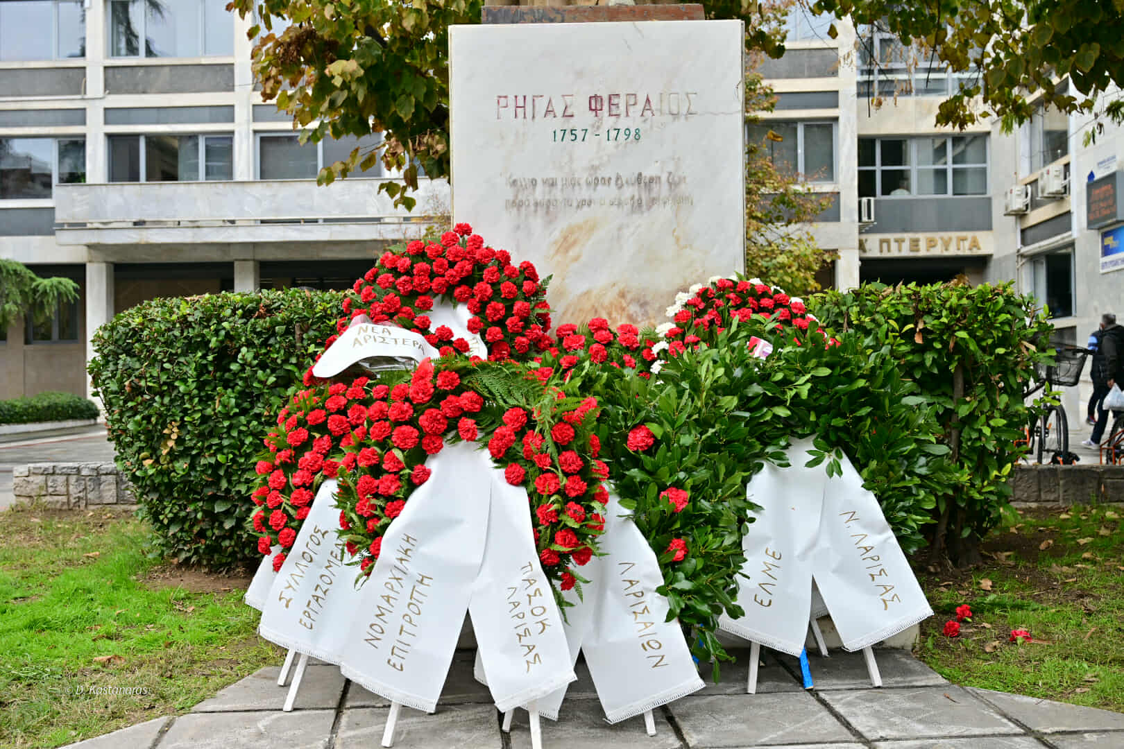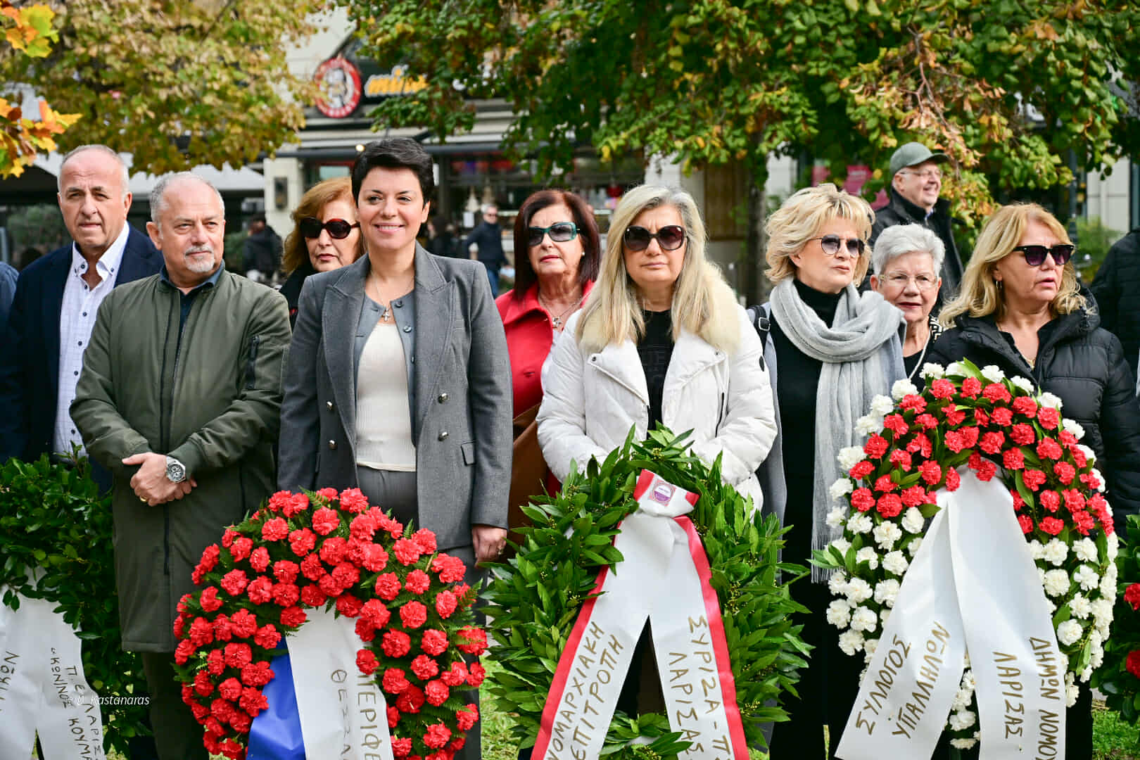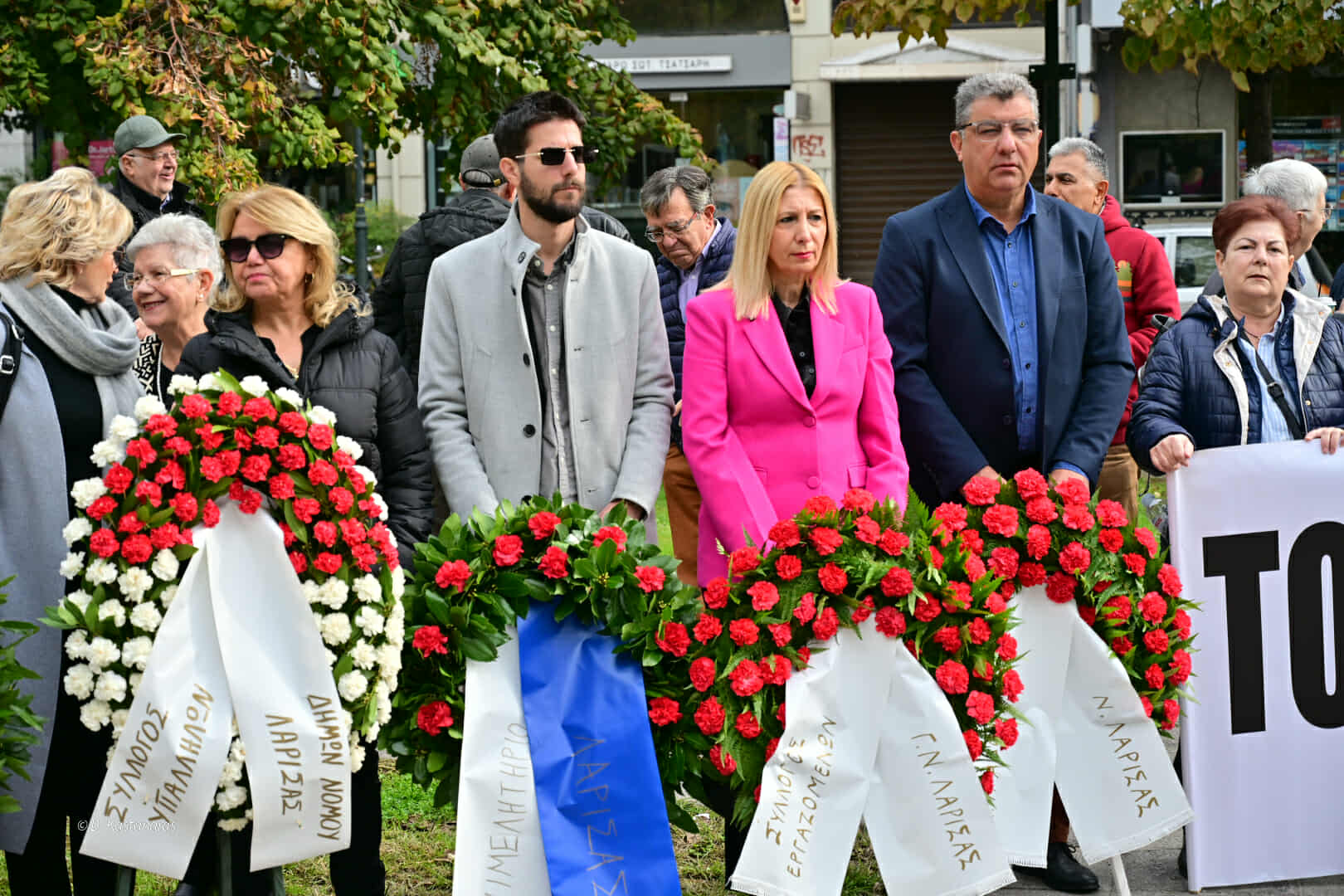 Γαρυφαλλιά Καρυστιανού (πρόεδρος Δημοτικού Συμβουλίου Δήμου Λαρισαίων): «Σήμερα θυμόμαστε τον αγώνα των φοιτητών του 1973. Είναι ένας δρόμος που είχε τη δική του ιστορία και είπαν ότι την έγραψαν παιδιά, όντως την έγραψαν παιδιά και να είμαστε σίγουροι ότι πάντα τα παιδιά έχουν την αίσθηση της δημοκρατίας. Αυτόν τον λαό πρέπει να τον πιστεύουμε, να τιμούμε την ιστορία του και να πιστεύουμε στο μέλλον του».