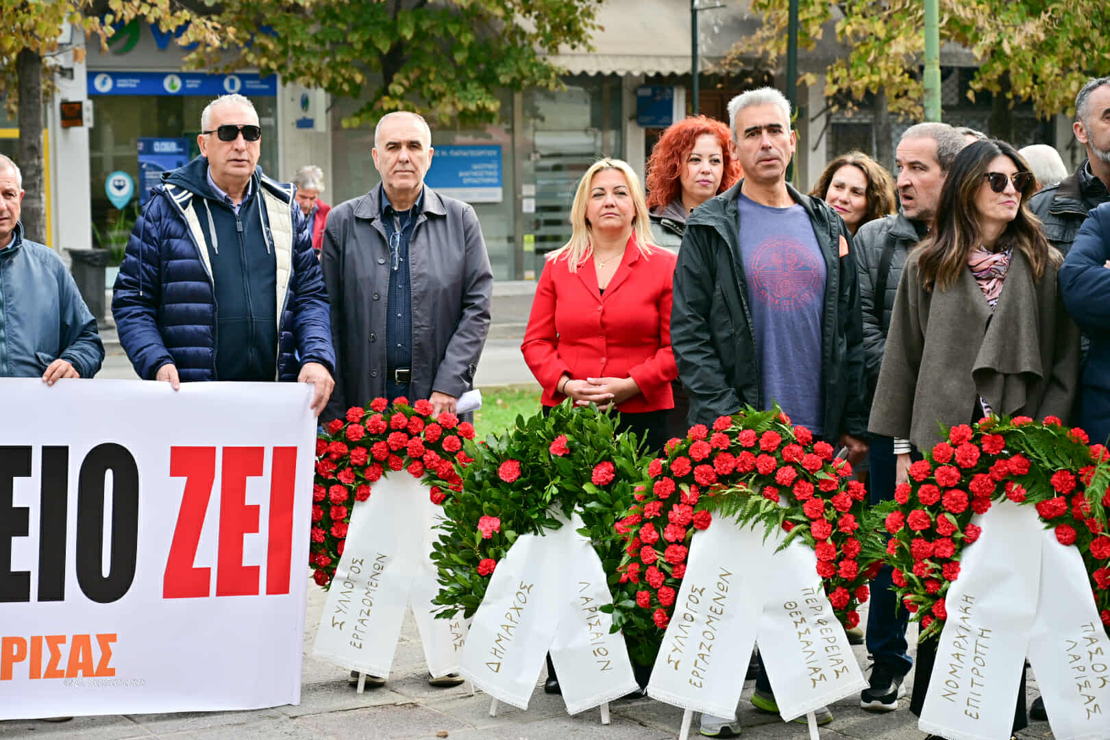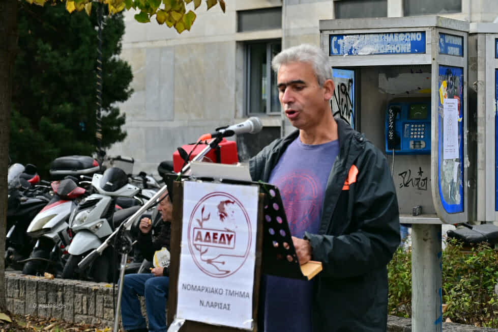 Μιχάλης Τζιατζιάς (πρόεδρος ΝΤ ΑΔΕΔΥ Λάρισας): «Το σύνθημα «Ψωμί, παιδεία, ελευθερία» που γράφτηκε πριν από 52 χρόνια είναι διαχρονικό και επίκαιρο μιας και ολοένα οι συνθήκες του εργαζόμενου χειροτερεύουν. Η καθημερινότητα είναι ένας γολγοθάς. Η ακρίβεια γονατίζει τα νοικοκυριά και οι μισθοί μένουν καθηλωμένοι.