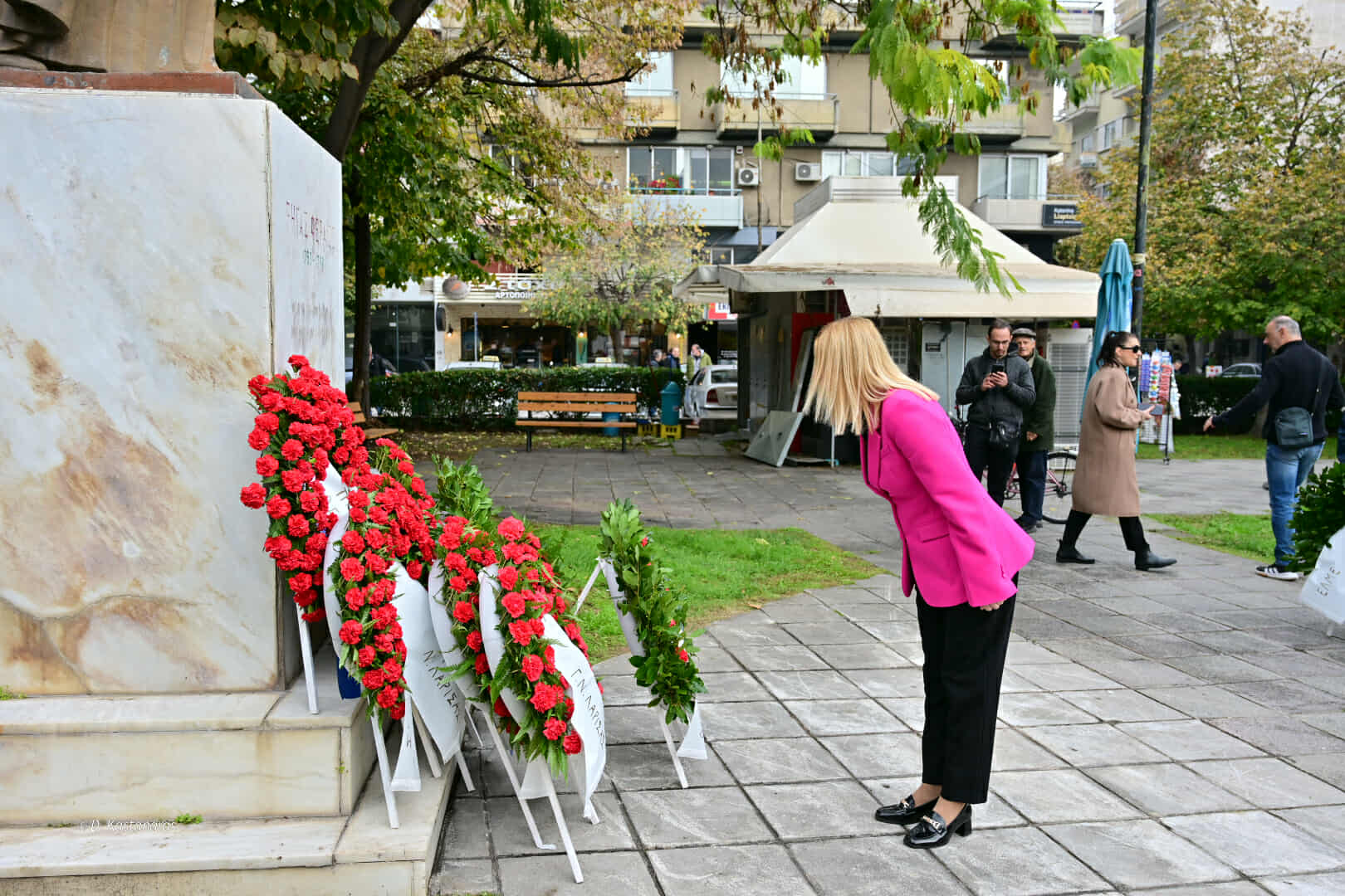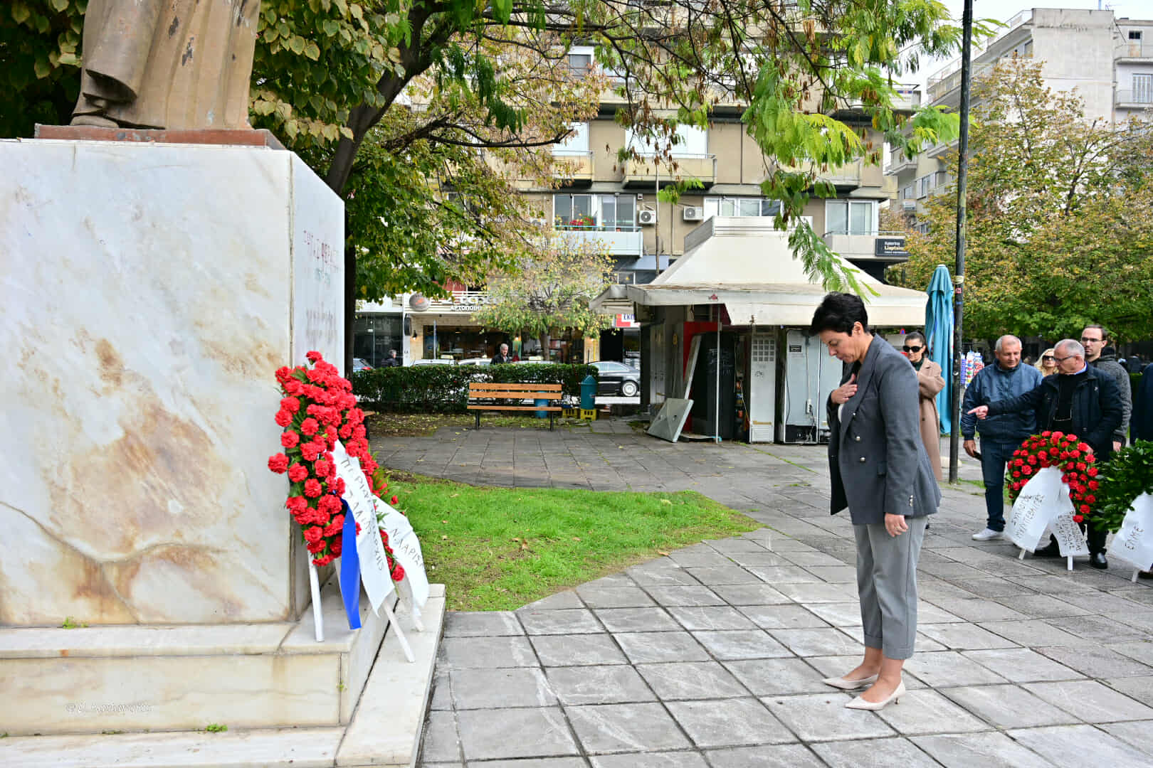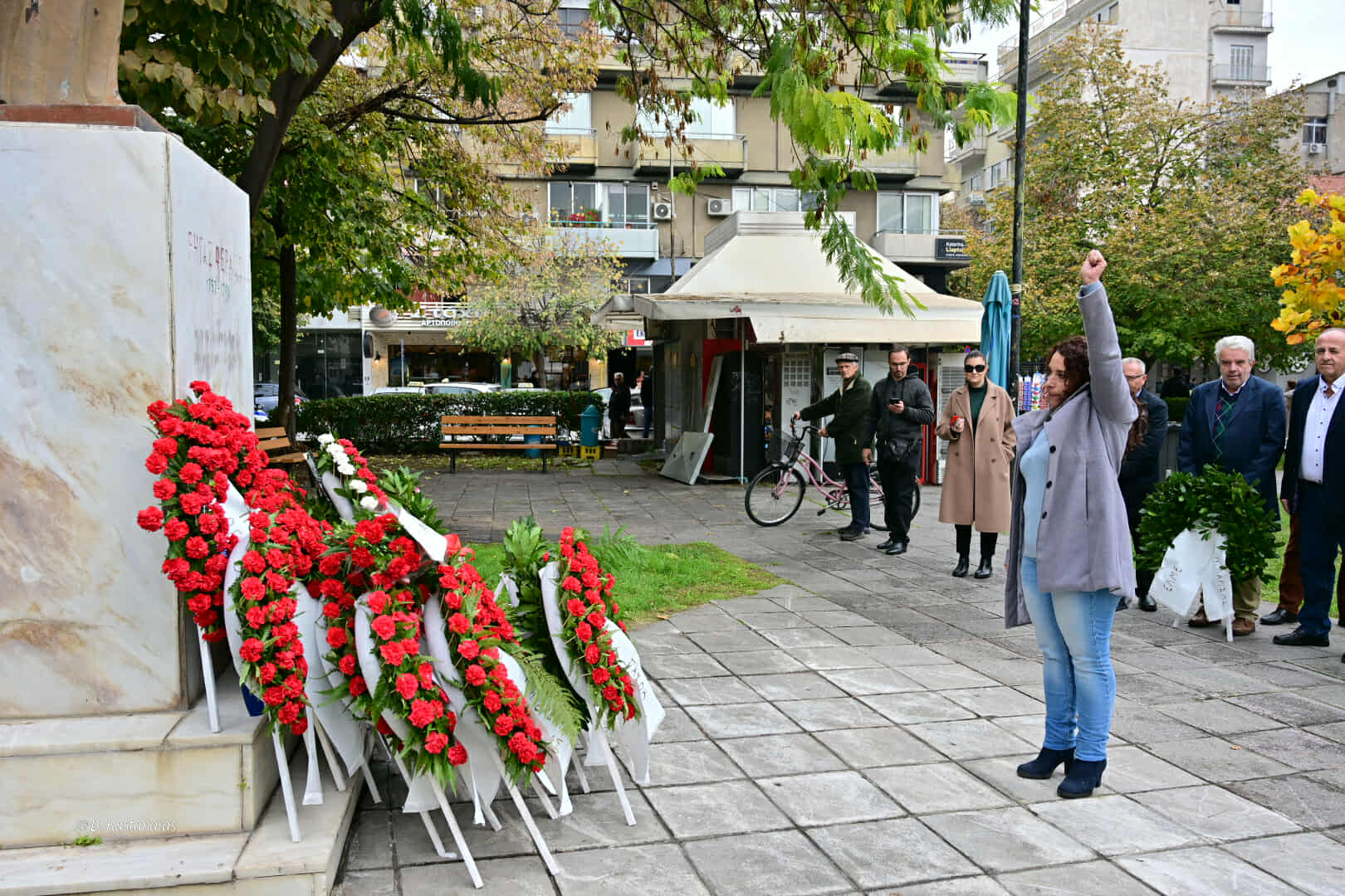 Μαρία Γαλλιού (αντιπεριφερειάρχης): «Είναι μία ιστορική στιγμή της σύγχρονης ελληνικής ιστορίας. Τιμούμε τις Ελληνίδες και τους Έλληνες που δεν λύγισαν και αντιστάθηκαν. Τιμούμε όμως το γεγονός ότι αυτή η αντίσταση χτίστηκε πάνω στη νεότερη γενιά, όλων εκείνων που μπροστά στο φόβο και στη μισαλλοδοξία αντιστάθηκαν.