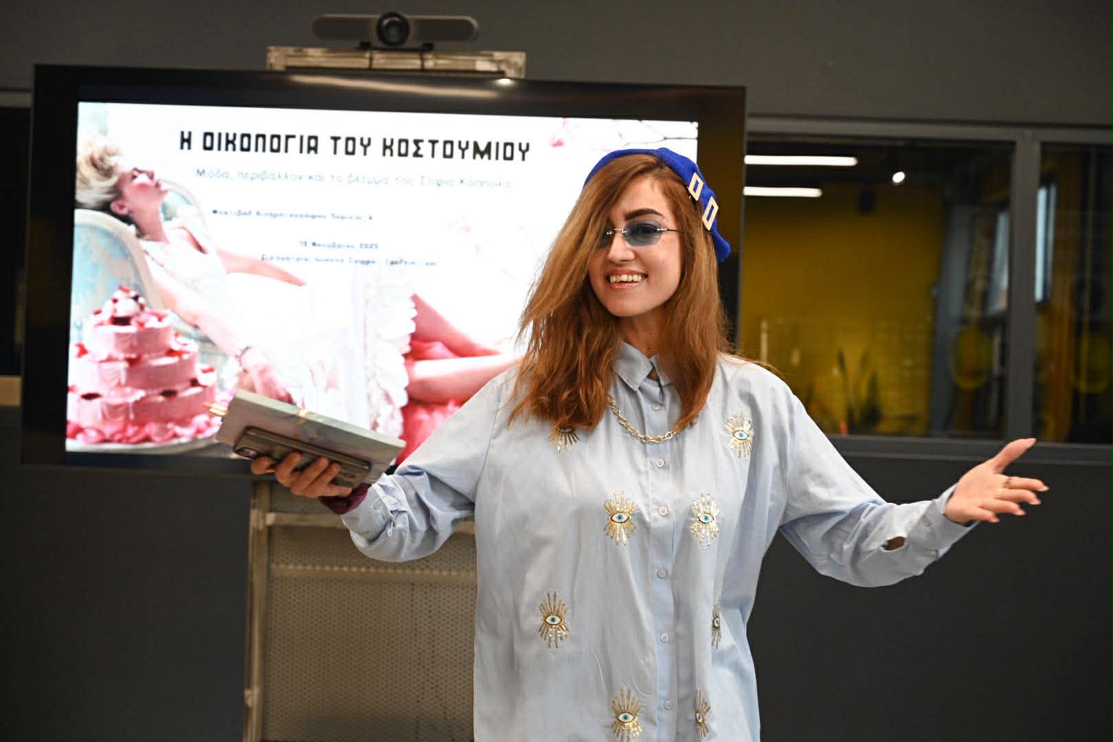 Μέσα από μια οικοκριτική ματιά η ομιλία εξέτασε πώς το κοστούμι μπορεί να αφηγηθεί τη σχέση ανθρώπου–φύσης και να επαναπροσδιορίσει την αισθητική πολυτέλεια με βιώσιμους όρους. Το φιλμ Μαρία Αντουανέτα της Σοφία Κόππολα λειτουργεί ως case study που εστιάζει στη σύνδεση ανάμεσα στο ένδυμα, το περιβάλλον και τη σύγχρονη συνείδηση κατανάλωσης. Η Ιωάννα Σοφρά είναι εκπαιδεύτρια μόδας και δημιουργός πλατφόρμας βιώσιμης μόδας fasfem.com με σπουδές στη Χημεία και μεταπτυχιακό στο Fashion Design & Management. Η δουλειά της εστιάζει στη θεωρία της μόδας, στις μελέτες φύλου και στην κοινωνική ευθύνη του ενδύματος.