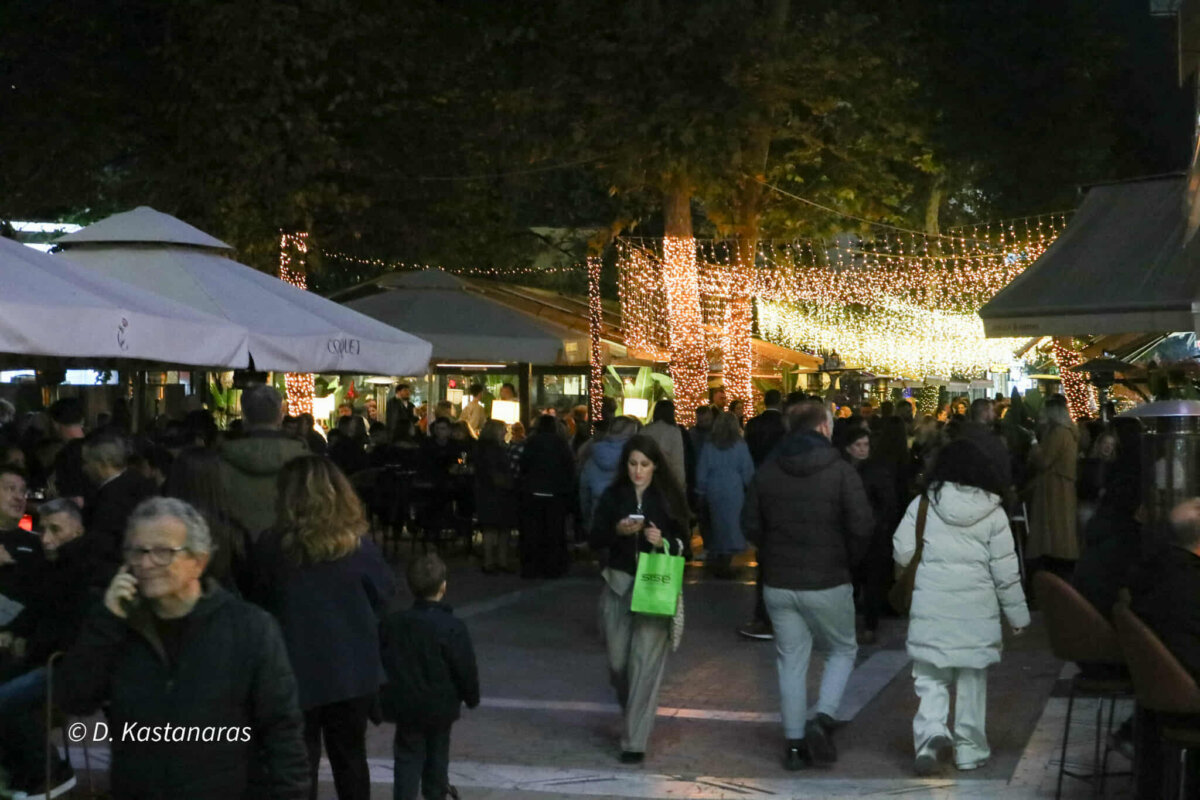 Παρασκευή βράδυ στη Λάρισα και η πόλη σφύζει από ζωή. Άλλοι βγήκαν για τα ψώνια τους — η Black Friday έχει φέρει κόσμο στους δρόμους — άλλοι απόλαυσαν τη βόλτα τους, ενώ πολλοί έχουν γεμίσει καφέ και μπαρ για ένα χαλαρό ποτό.