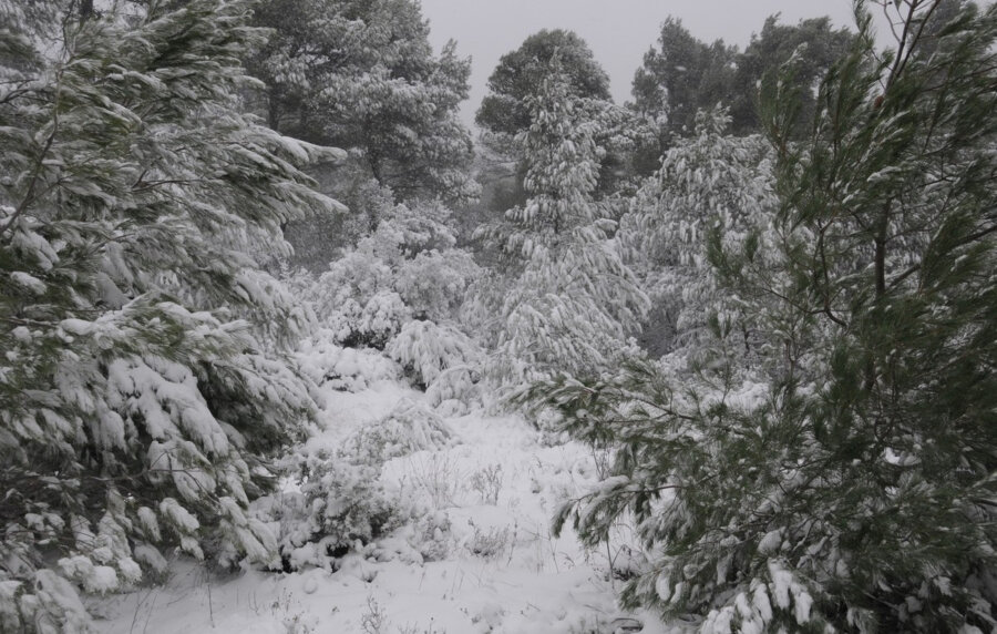 Από νωρίς το πρωί, οι κορυφές αλλά και μεγάλα τμήματα του βουνού άρχισαν να καλύπτονται από λεπτό στρώμα χιονιού, δημιουργώντας μια ατμόσφαιρα που θύμιζε ότι ο χειμώνας έφτασε για τα καλά.