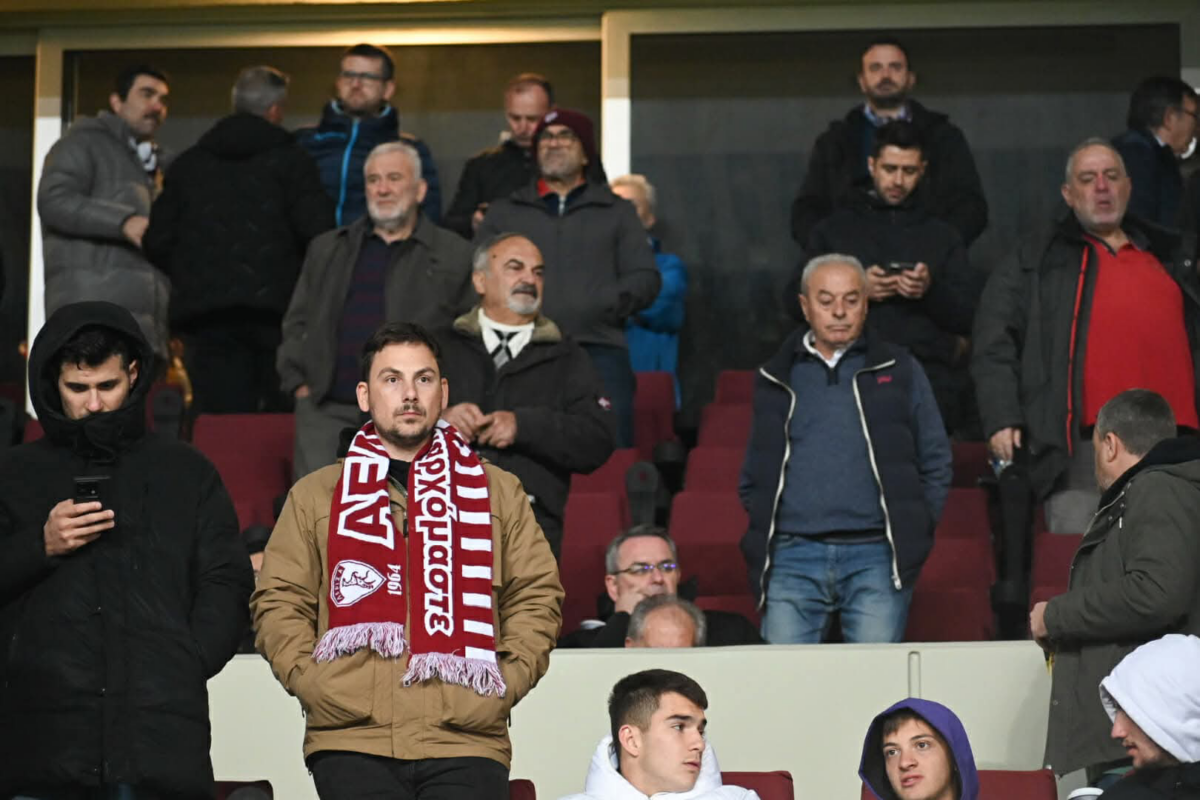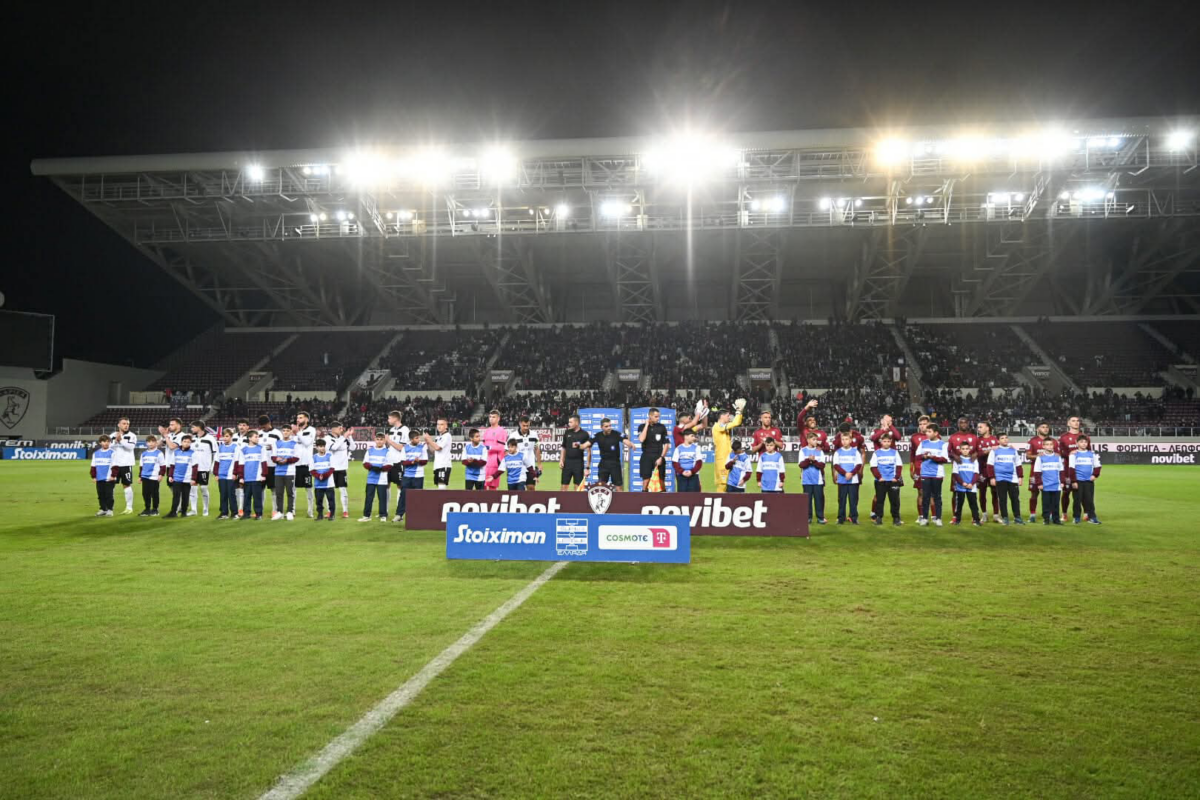 Στο 57’ της αναμέτρησης το γήπεδο σείστηκε, με τους φιλάθλους των δύο ομάδων να ενώνουν τις φωνές τους σε ένα κοινό σύνθημα για το πολύνεκρο σιδηροδρομικό δυστύχημα των Τεμπών.