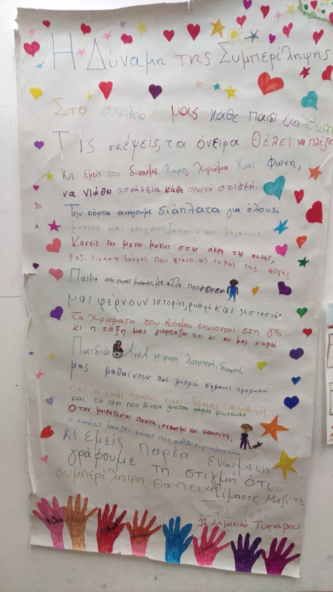 Με αφορμή την Παγκόσμια Ημέρα Ψυχικής Υγείας και μετά από αίτημα των εκπαιδευτικών του 1ουΔημοτικού Σχολείου Τυρνάβου, το Κέντρο Κοινότητας του Δήμου Τυρνάβου πραγματοποίησε την Παρασκευή 21 Νοεμβρίου 2025,δράση ευαισθητοποίησης με τα παιδιά της Ε΄ και της Στ΄ τάξης.