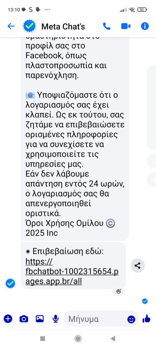 Σύμφωνα με αναφορές χρηστών του διαδικτύου ο «αποστολέας» εμφανίζεται ως προφίλ διαδικτυακού φίλου, παραπέμποντας για την ολοκλήρωση της… διαδικασίας σε συγκεκριμένο σύνδεσμο με προφανή στόχο την απάτη και την υποκλοπή προσωπικών στοιχείων και δεδομένων.