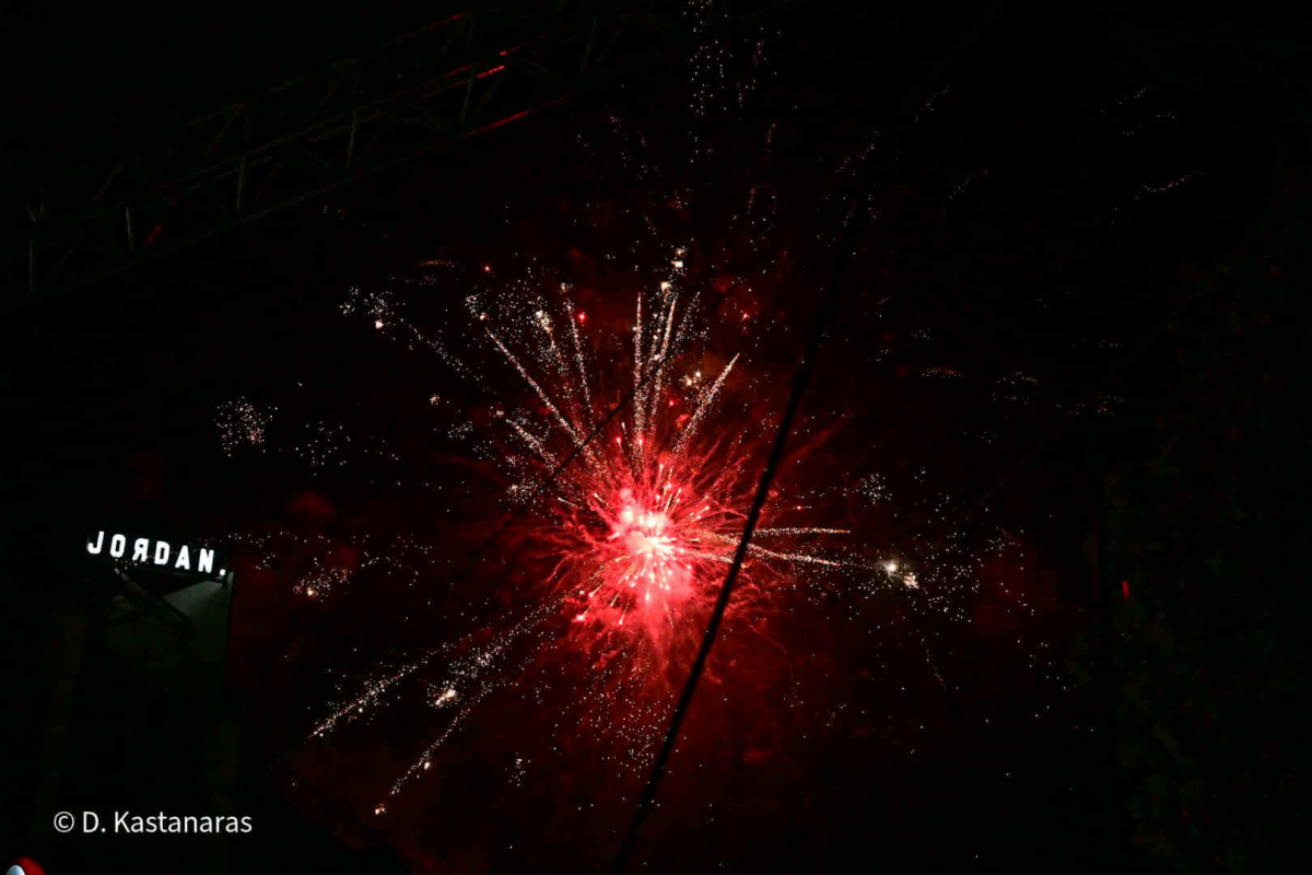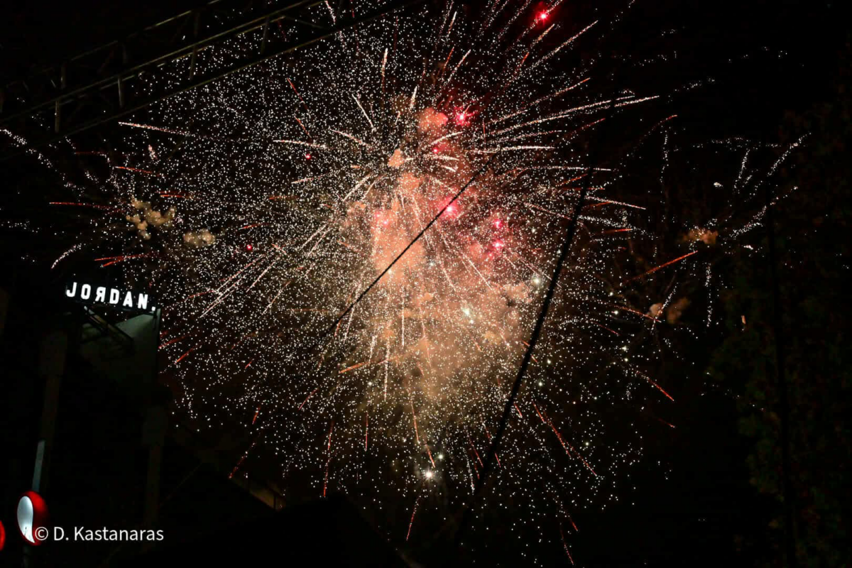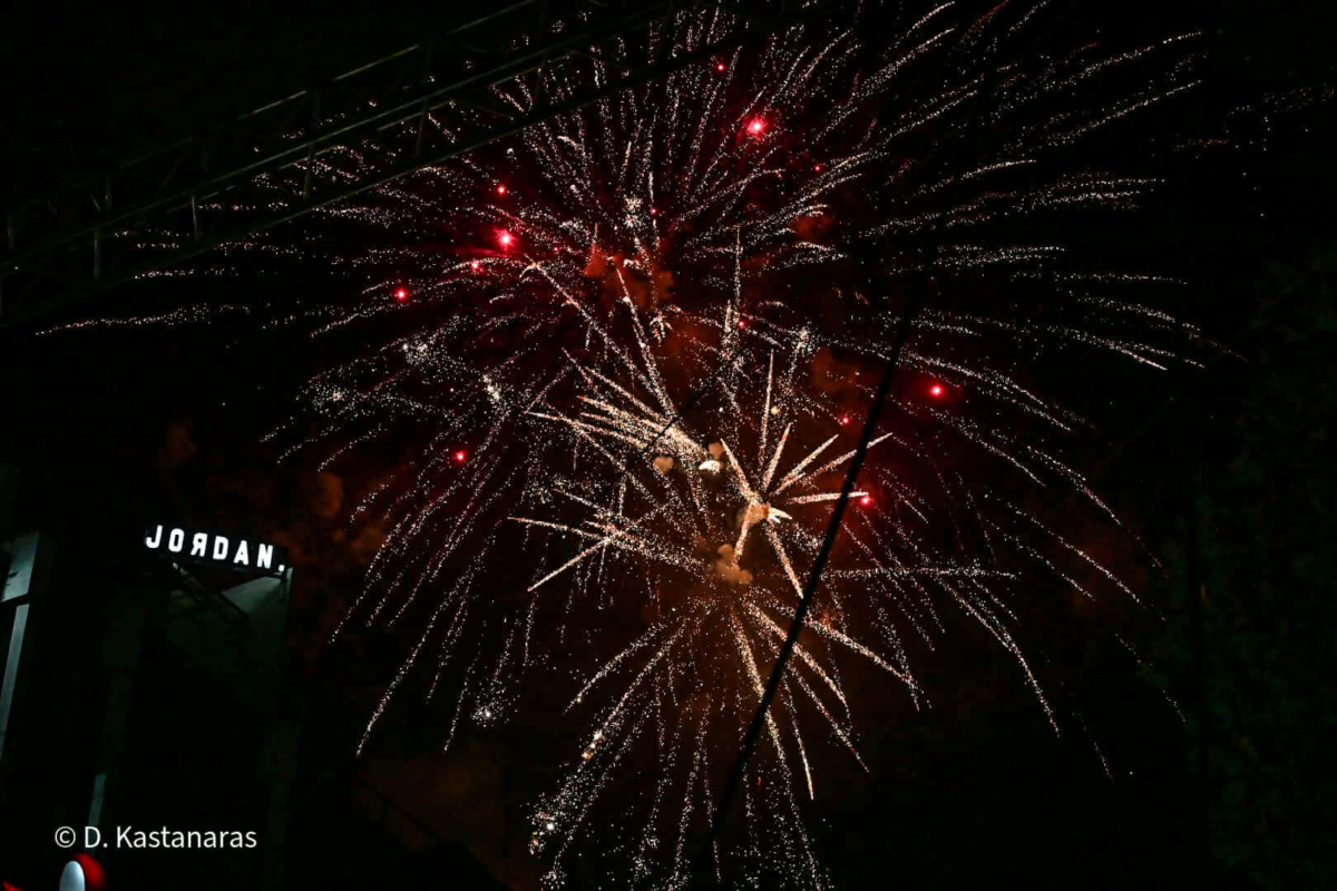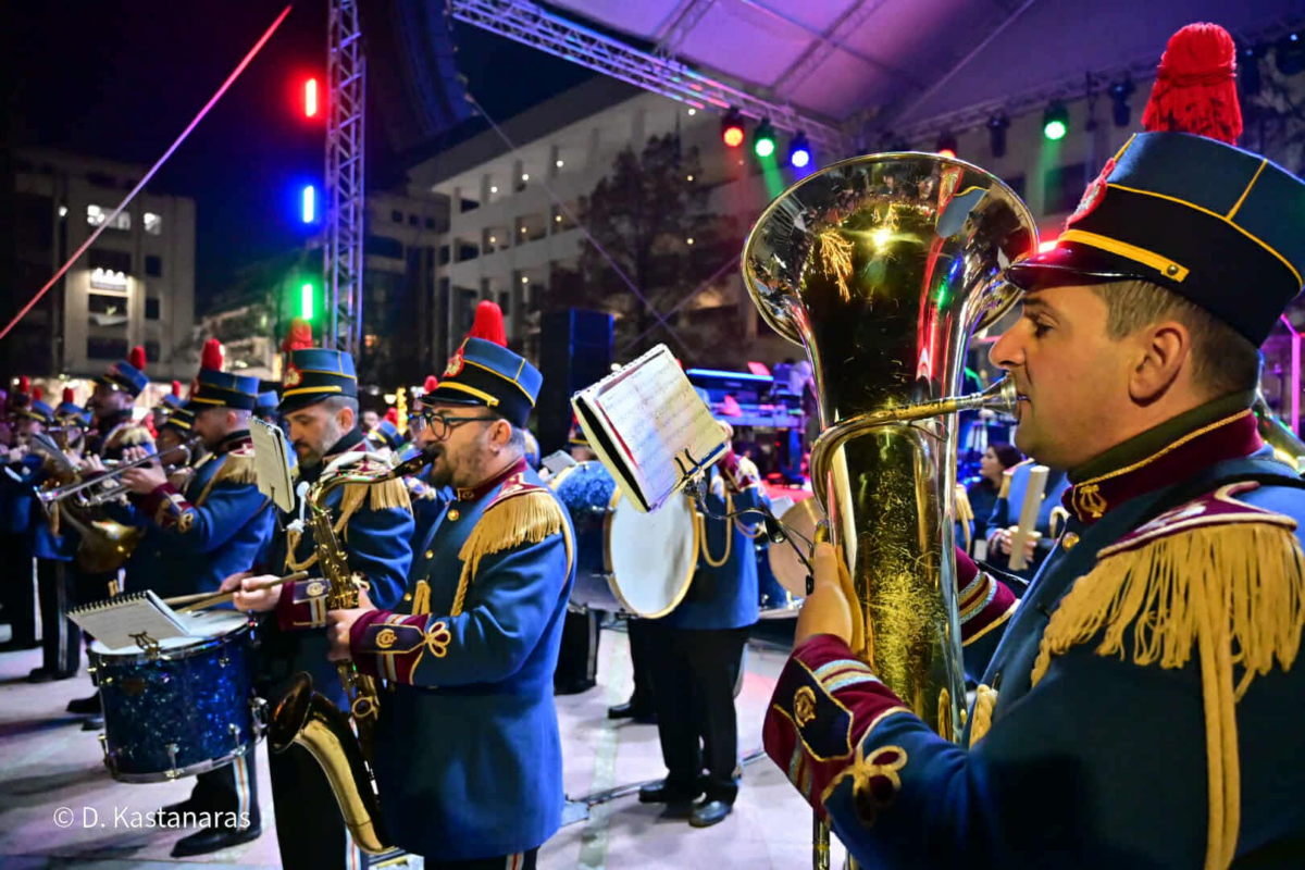 Πλήθος κόσμου συγκεντρώθηκε στην Κεντρική Πλατεία, απολαμβάνοντας το εντυπωσιακό θέαμα με βεγγαλικά και τη συνοδεία της Φιλαρμονικής Ορχήστρας του Δήμου Λαρισαίων.