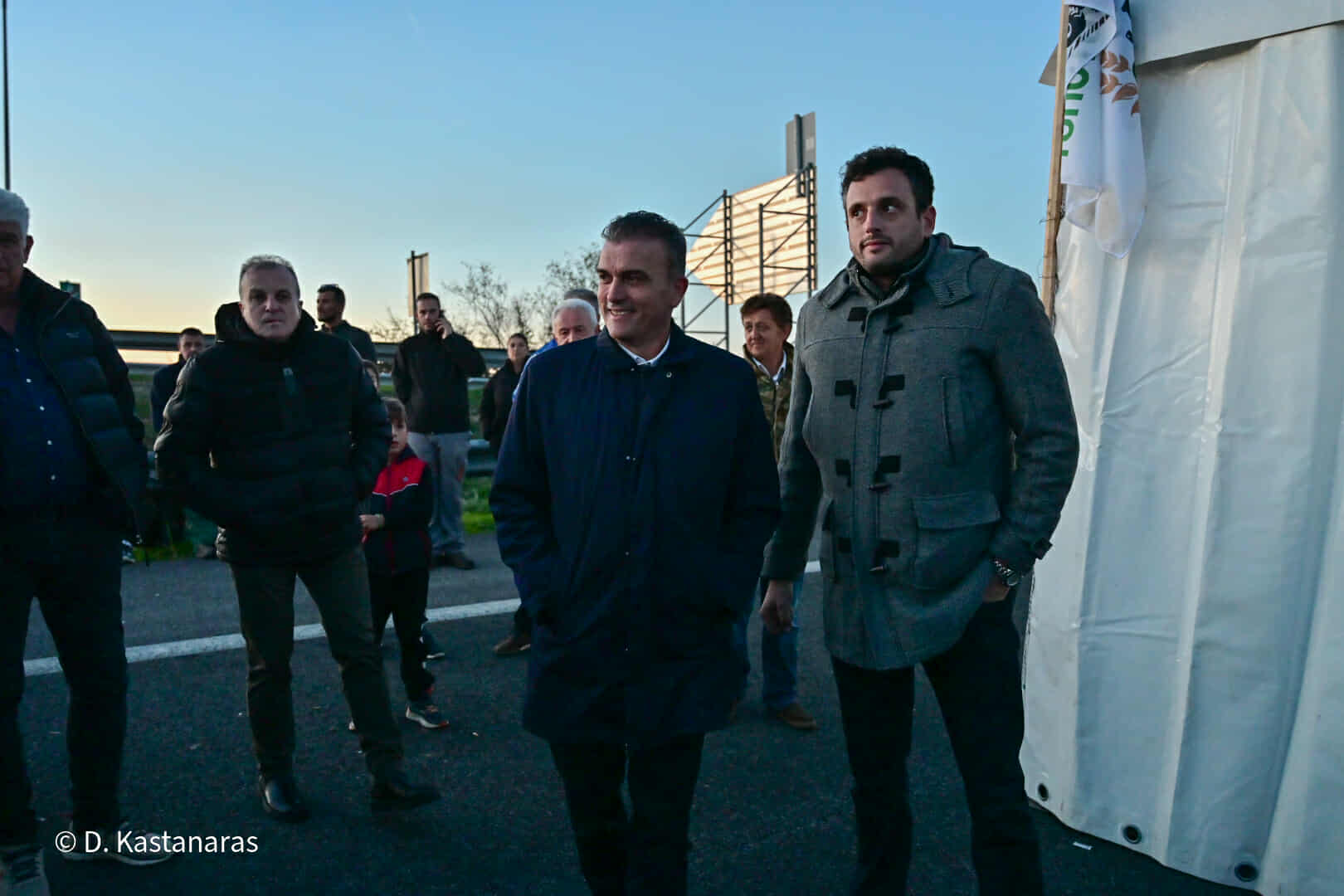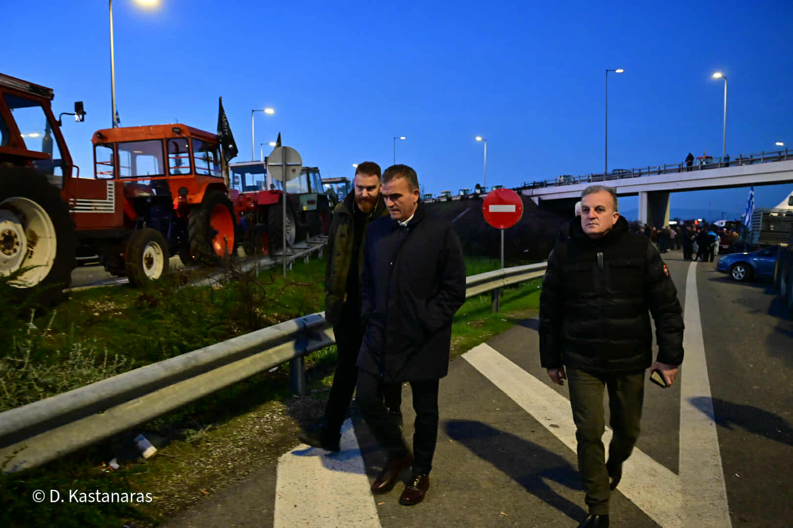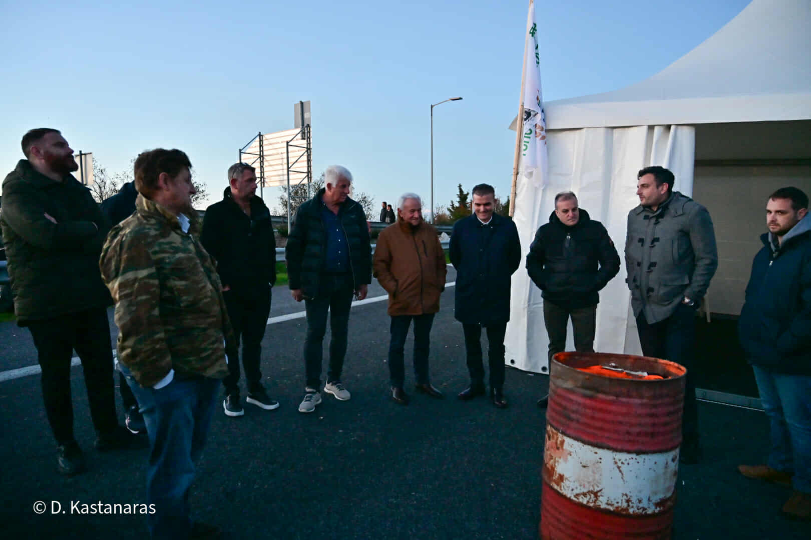 Το παρών στο μπλόκο έδωσε και ο δήμαρχος Λαρισαίων Θανάσης Μαμάκος, ο οποίος συνομίλησε με τον δήμαρχο Τυρνάβου Στέλιο Τσικριτσή και τους αγρότες.