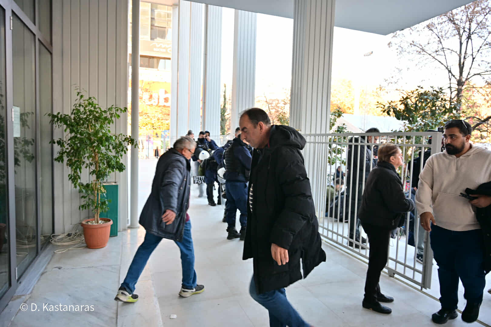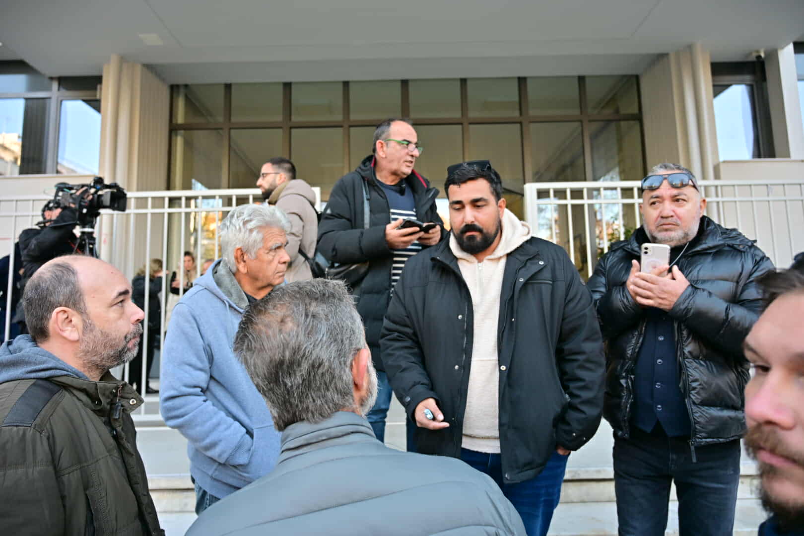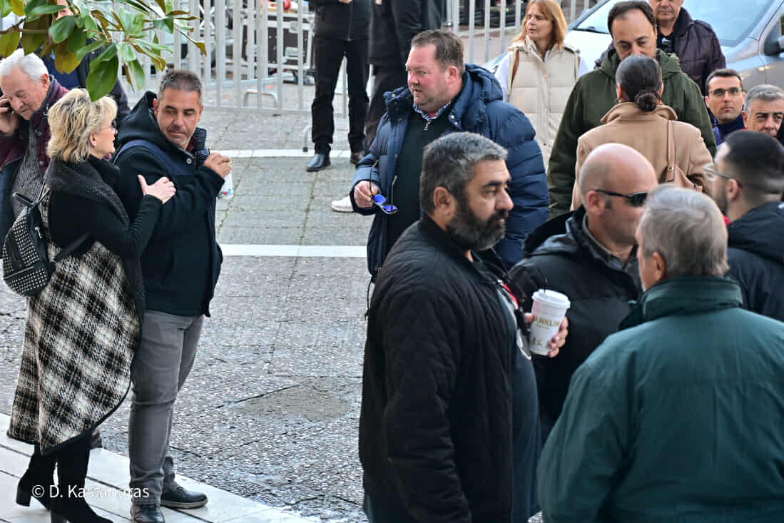 Οι συλληφθέντες έφτασαν στα δικαστήρια λίγο μετά τις 11 το πρωί και μετά από διαβουλεύσεις κατέστη δυνατό να εισέλθει εντός του Μεγάρου αντιπροσωπεία πέντε ατόμων από τους συγκεντρωθέντες.