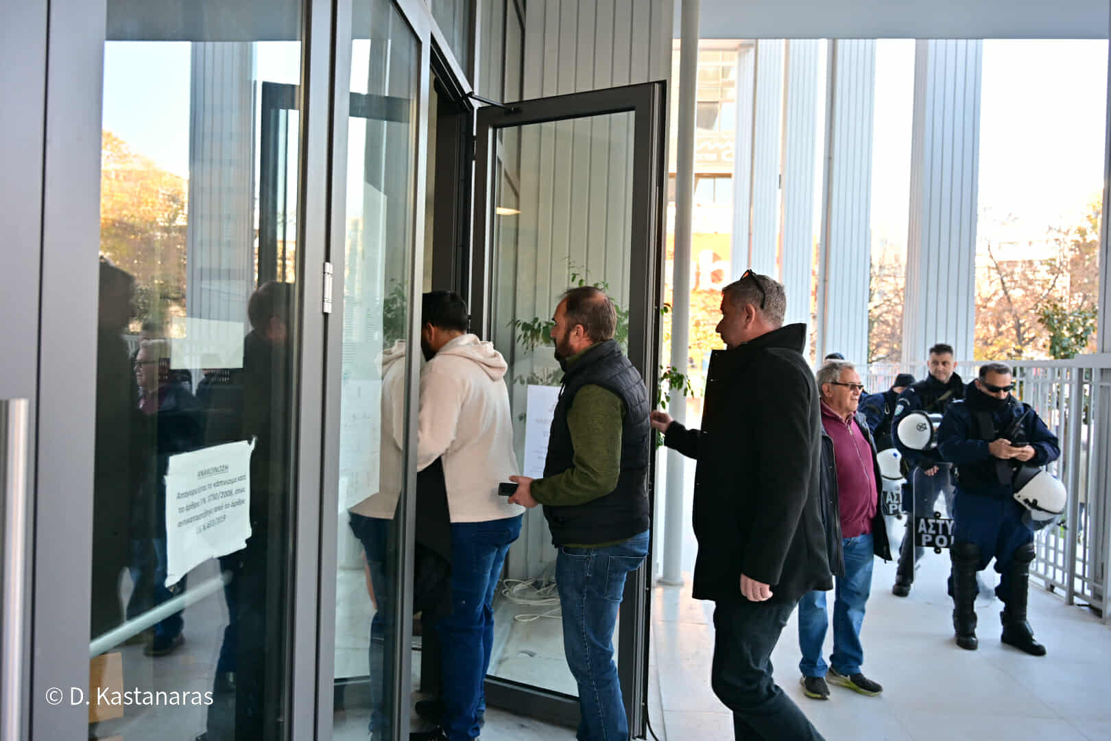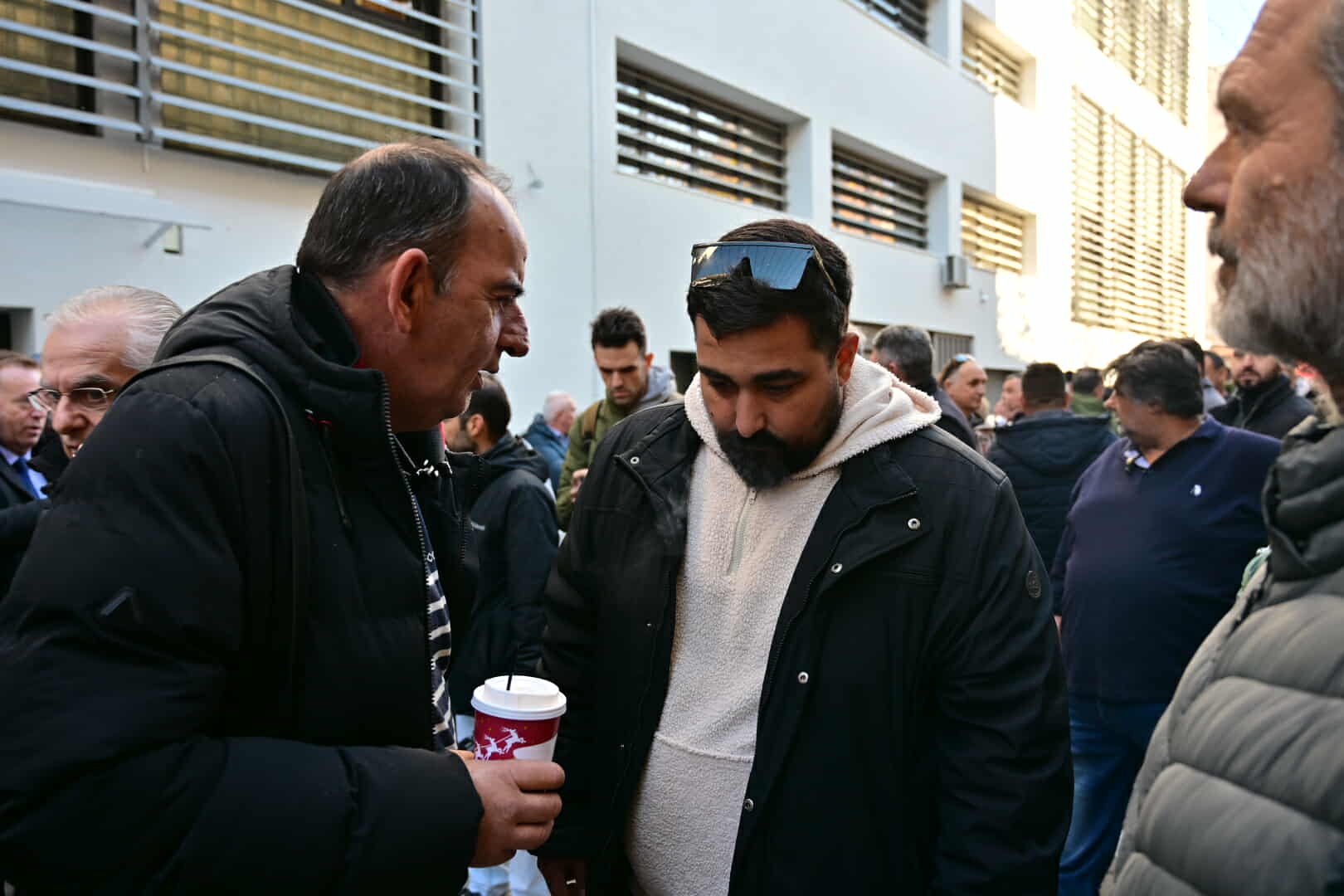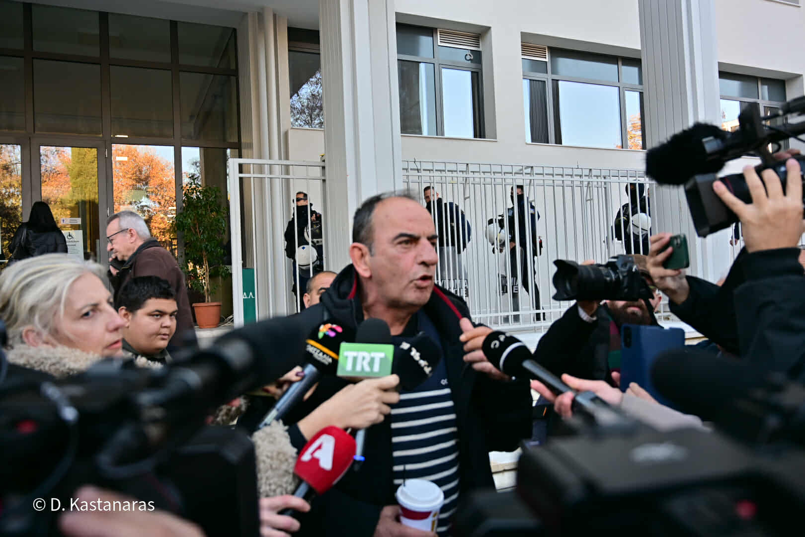 Οι συλληφθέντες έφτασαν στα δικαστήρια λίγο μετά τις 11 το πρωί και μετά από διαβουλεύσεις κατέστη δυνατό να εισέλθει εντός του Μεγάρου αντιπροσωπεία πέντε ατόμων από τους συγκεντρωθέντες.