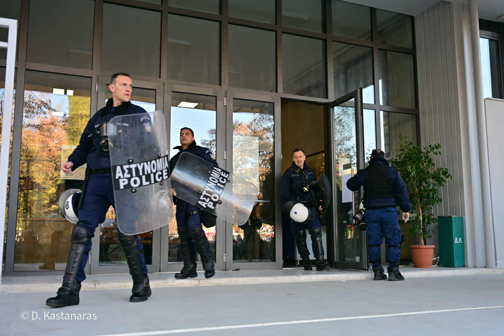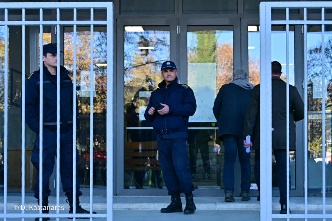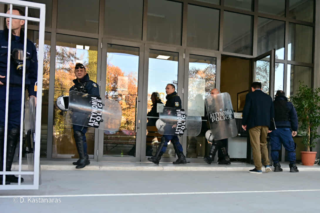 Ισχυρές αστυνομικές δυνάμεις βρίσκονται από νωρίς το πρωί της Δευτέρας εντός και εκτός Δικαστικού Μεγάρου για τη δίκη των δύο συλληφθέντων αγροτών.
