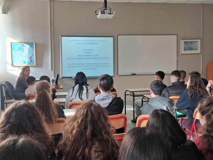 Τη Δευτέρα 1 Δεκεμβρίου 2025, η κ. Κληματσούδα Μαρία, επιμελήτρια Β΄ και μαιευτήρας-γυναικολόγος του Πανεπιστημιακού Νοσοκομείου Θεσσαλίας, επισκέφθηκε το 12ο ΓΕΛ Λάρισας και πραγματοποίησε μια ιδιαίτερα ενδιαφέρουσα και κατατοπιστική παρουσίαση προς τους μαθητές των Α’και Β΄ τάξεων με θέμα: «Σεξουαλικώς Μεταδιδόμενες Λοιμώξεις».