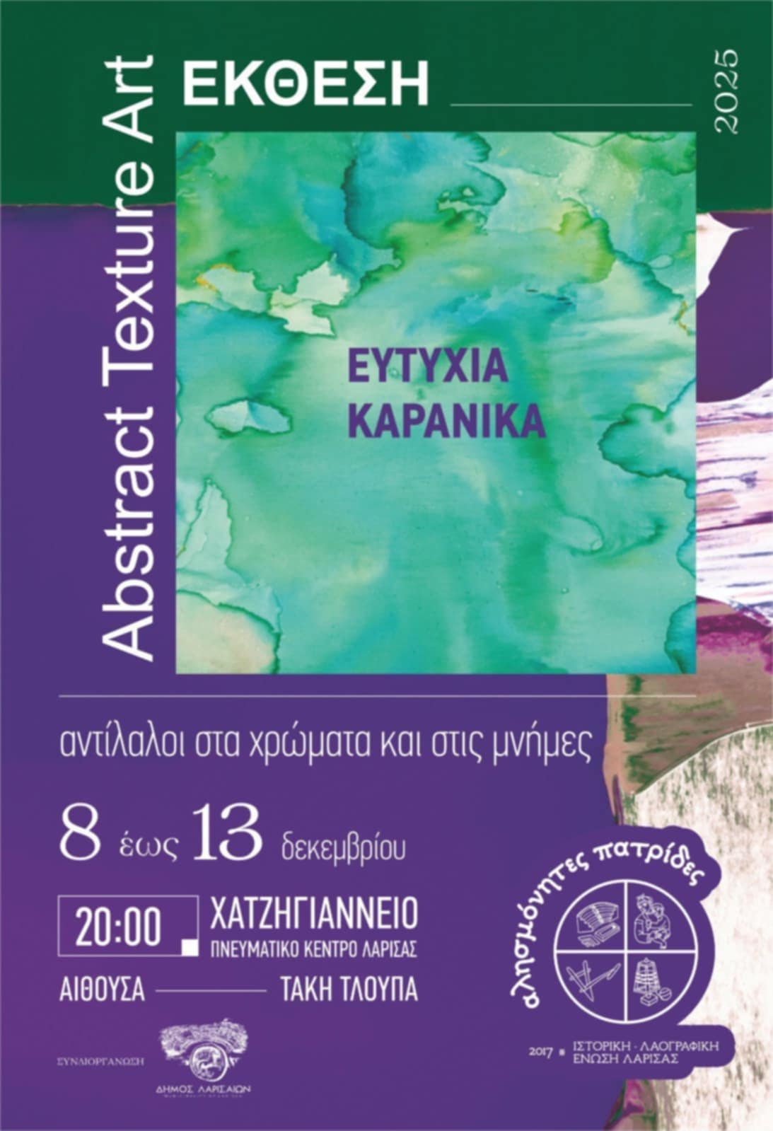 Οι «Αλησμόνητες Πατρίδες» σας προσκαλούν σε μια μοναδική εικαστική εμπειρία, όπου η ροή του χρώματος και η υφή συνυπάρχουν σε έναν αέναο διάλογο έκφρασης.