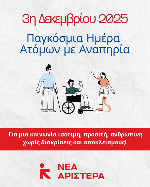 Καλούμε πολίτες, φορείς, θεσμούς, πολιτεία, να σταθούμε έμπρακτα δίπλα στα ανάπηρα άτομα και τις οικογένειές τους. Να απαιτήσουμε αποδοχή, κοινωνική συμπερίληψη, δικαιοσύνη, ισότητα, προσβασιμότητα, αξιοπρέπεια. Κάνουμε την αναπηρία αφορμή για αφύπνιση και συλλογική δράση.