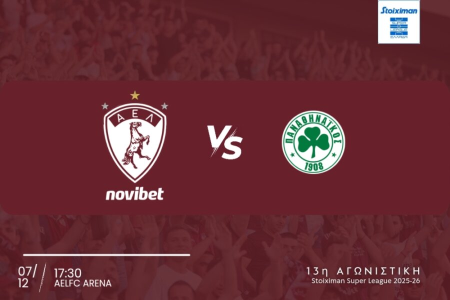 Η ΠΑΕ ΑΕΛ Novibet ενημερώνει τους φιλάθλους της ότι ξεκίνησε η διάθεση των εισιτηρίων του αγώνα της 13ης Αγωνιστικής της Stoiximan Super League με αντίπαλο τον Παναθηναϊκό στο AEL FC ARENA (07/12, 17:30).