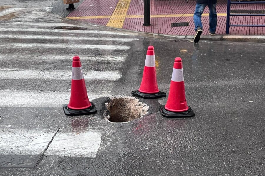 Στο σημείο όπου υποχώρησε η άσφαλτος έχουν τοποθετηθεί οι χαρακτηριστικοί κώνοι για τη σήμανσή του, ωστόσο οδηγοί και πεζοί καλούνται να κινηθούν με προσοχή για την αποφυγή ατυχήματος.