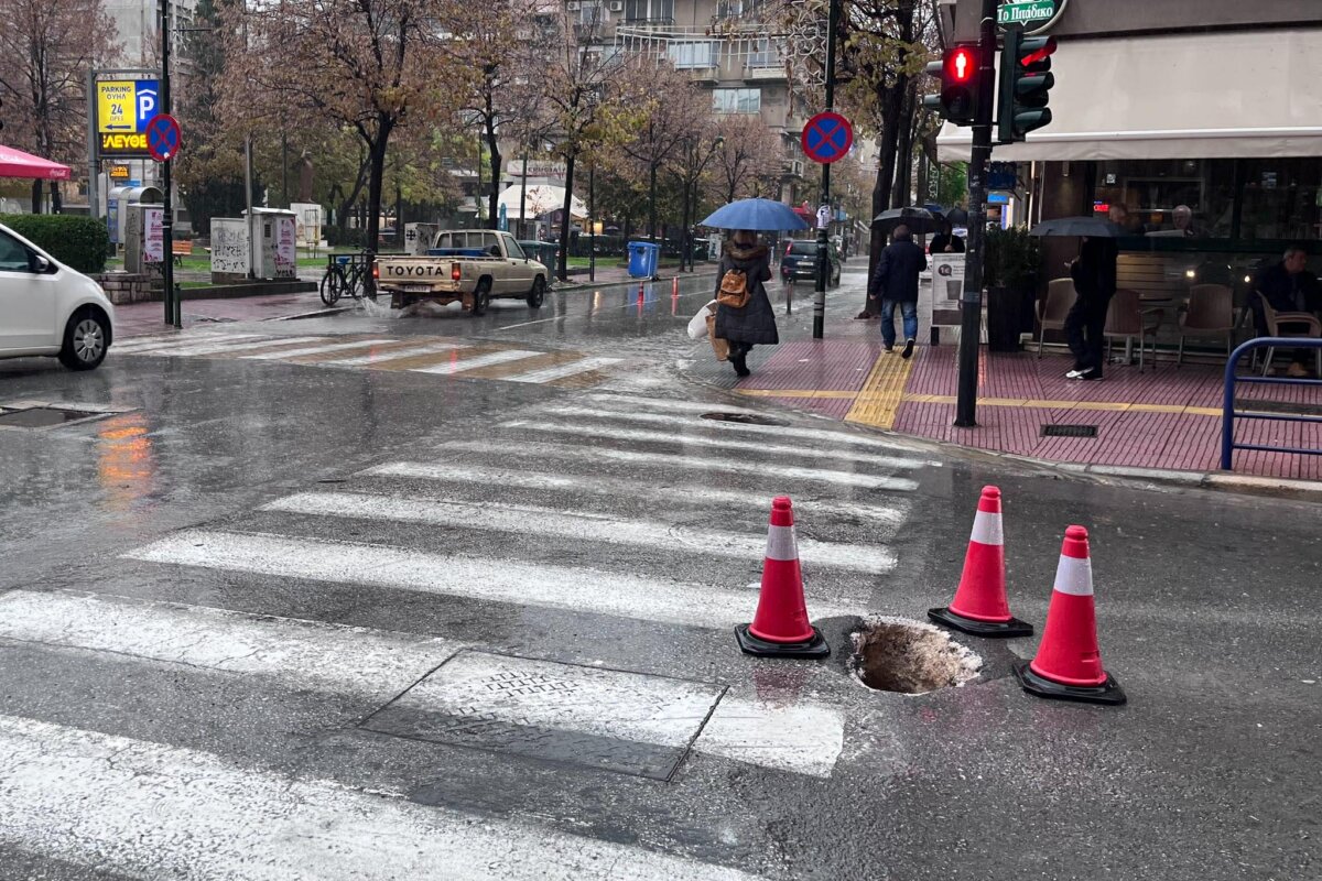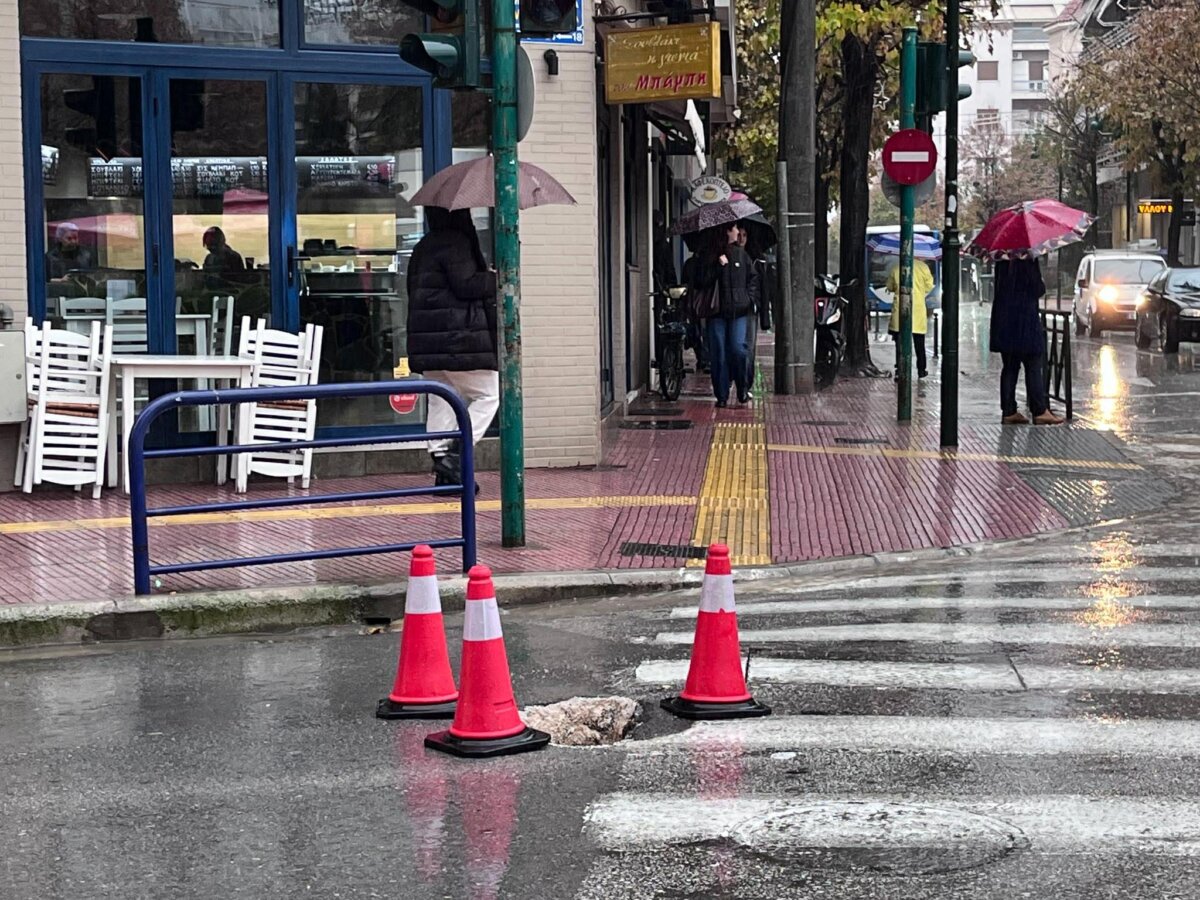 Με αυξημένη προσοχή καλούνται να κινηθούν σήμερα Λαρισαίοι εποχούμενοι και πεζοί στο κέντρο της πόλης και στη συμβολή των οδών Παπαναστασίου και Μανδηλαρά καθώς λόγω της ισχυρής βροχόπτωσης δημιουργήθηκε τρύπα στο οδόστρωμα.