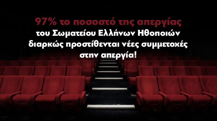 Το 97% ξεπερνούν τα ποσοστά απεργίας του Σωματείου Ελλήνων Ηθοποιών, ενώ διαρκώς προστίθενται νέες συμμετοχές στην απεργία!