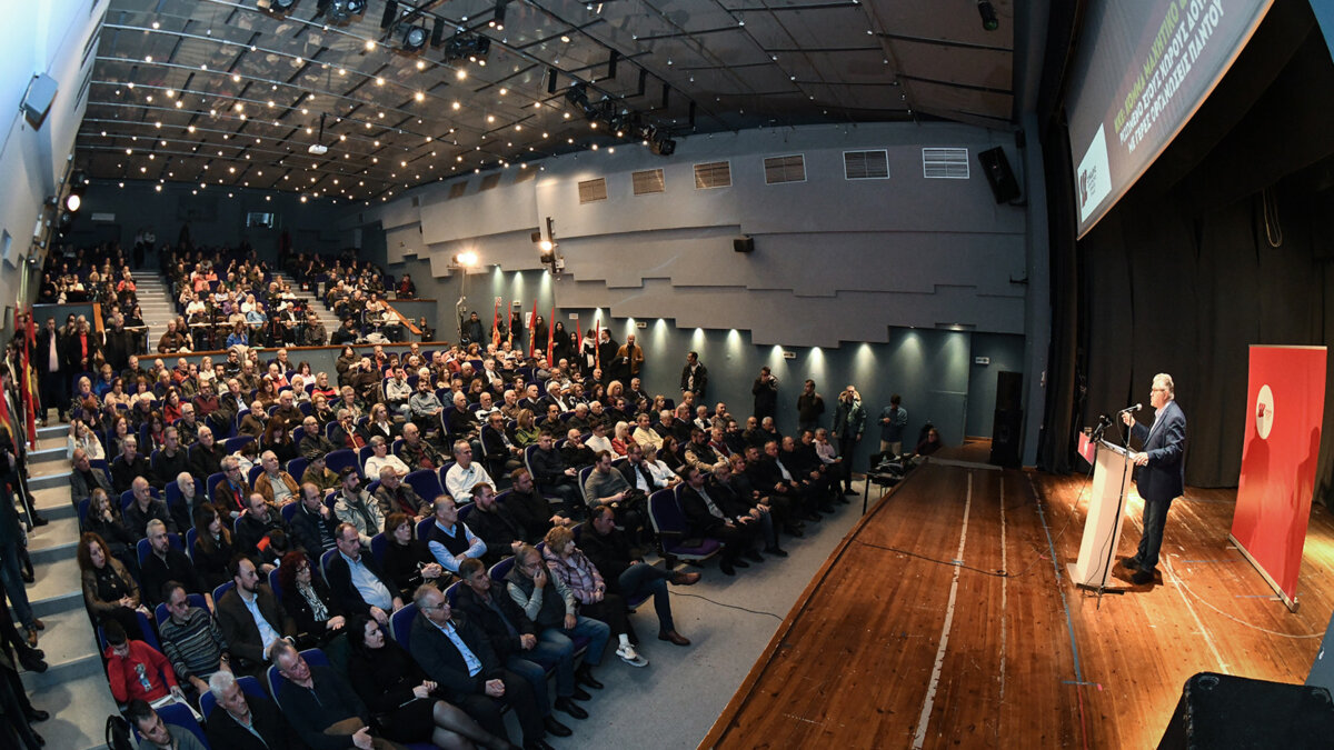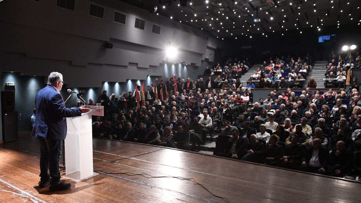 Στο κατάμεστο δημοτικό θέατρο Μαξίμ στον Τύρναβο Λάρισας μίλησε χθες το απόγευμα ο ΓΓ της ΚΕ του ΚΚΕ, Δημήτρης Κουτσούμπας στο πλαίσιο της επίσκεψης που πραγματοποιεί στην Θεσσαλία, σήμερα και αύριο.