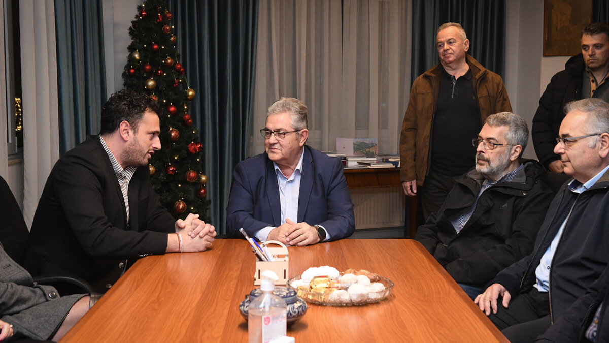 Με τον Δήμαρχο Τυρνάβου Στέλιο Τσικριτσή και αντιπροσωπεία της Δημοτικής Αρχής Τυρνάβου συναντήθηκε το απόγευμα του Σαββάτου ο ΓΓ της ΚΕ του ΚΚΕ Δημήτρης Κουτσούμπας. Εκ μέρους του ΚΚΕ στη συνάντηση συμμετείχαν ακόμα ο Κύριλλος Παπασταύρου, μέλος του ΠΓ, η Μαρία Γαβαλά, μέλος της Γραμματείας της ΚΕ και Γραμματέας της ΕΠ Θεσσαλίας και ο Γιώργος Λαμπρούλης, βουλευτής Λάρισσας του ΚΚΕ.