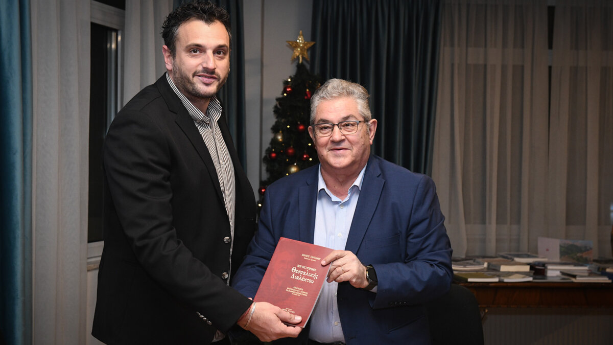 Ο Στ. Τσικριτσής καλωσόρισε τον Δ. Κουτσούμπα, ευχαριστώντας τον καθώς το ΚΚΕ διεκδικεί τα αιτήματα των Δήμων, ζητήματα υποχρηματοδότησης και υποστελέχωσης, αλλά και ειδικά αιτήματα του Δήμου Τυρνάβου. Προσέφερε στον Δ. Κουτσούμπα το βιβλίο του Αχιλλέα Τζάρτζανου, “Περί της Συγχρόνου Θεσσαλικής Διαλέκτου”, καθώς και κρασί από τον αγροτικό συνεταιρισμό.Ο Δ. Κουτσούμπας εξέφρασε τη χαρά του που βρίσκεται σε ένα δήμο αγωνιστικό, που παλεύει,που ενδιαφέρεται για τα προβλήματα των κατοίκων του, αλλά και των κατοίκων της Θεσσαλίας και όλης της Ελλάδας. Γιατί συμμετέχετε στους αγώνες που δίνει η αγροτιά για να επιβιώσει, να μείνει στη γη της και αυτό είναι πολύ σημαντικό, τόνισε.