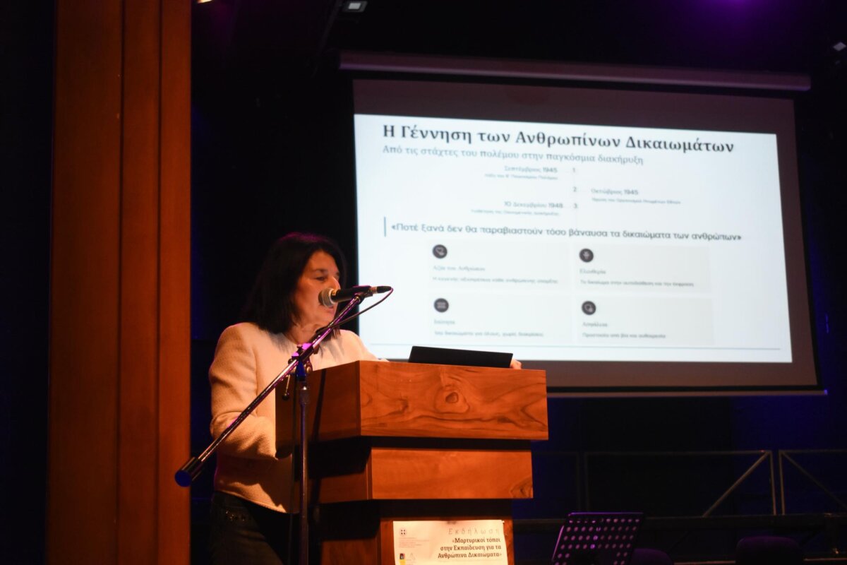 «Τα παιδιά μας θα πρέπει να κατανοήσουν ότι τα ανθρώπινα δικαιώματα δεν είναι κεκτημένα, αλλά κατακτώνται» τόνισε η Περιφερειακή Διευθύντρια Εκπαίδευσης Θεσσαλίας κ. Βασιλική Ζιάκα, λίγο πριν την εκδήλωση με αφορμή την Παγκόσμια Ημέρα Ανθρωπίνων Δικαιωμάτων, που διεξάγεται στο ΔΩΛ από μαθητές, εκπαιδευτικούς, μουσικούς και πανεπιστημιακούς με τίτλο «Μαρτυρικοί τόποι στην Εκπαίδευση για τα Ανθρώπινα Δικαιώματα».