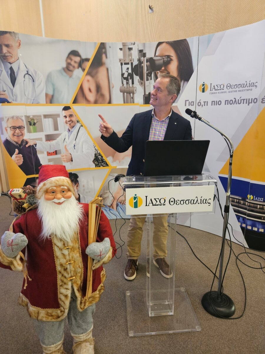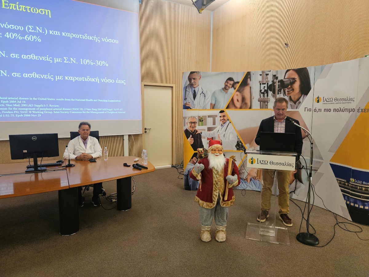 Ο Αγγειοχειρουργός και Επιστημονικά Υπεύθυνος του Αγγειοχειρουργικού Τμήματος, Βασίλειος Σαλεπτσής MD, MSc, PhD, παρουσίασε τις σύγχρονες εξελίξεις που μεταβάλλουν ουσιαστικά τον τρόπο με τον οποίο προσεγγίζεται η περιφερική αρτηριακή νόσος σήμερα. Τη συζήτηση συντόνισε ο Δρ. Απόστολος Κομνός, Αναισθησιολόγος – Εντατικολόγος και Διευθυντής Ιατρικής Υπηρεσίας του ΙΑΣΩ Θεσσαλίας.