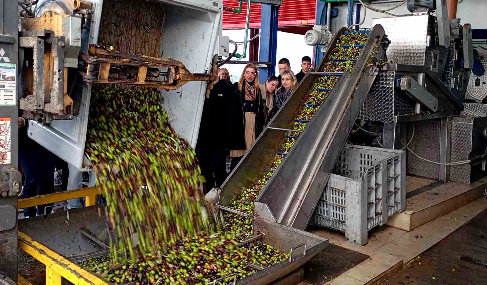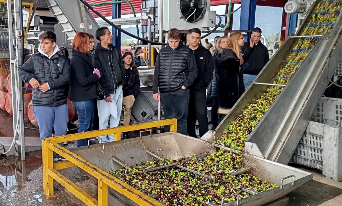 Κατόπιν, οι μαθητές επισκέφθηκαν το πρότυπο Ελαιοτριβείο του Τσακιρίδη Δημήτρη στο 1ο χλμ Πουρναρίου – Ελάτειας, όπου είχαν την ευκαιρία να δουν σε πλήρη εξέλιξη όλα τα στάδια παραγωγής του ελαιόλαδου και να ξεναγηθούν στις εγκαταστάσεις της εταιρίας από την Τσακιρίδη Γιούλη. Επίσης, ενημερώθηκαν για τον τρόπο διακίνησης των προϊόντων στις αγορές εντός και εκτός Ελλάδος, αλλά και για άλλα θέματα όπως οι κατηγορίες και η τυποποίηση του ελαιόλαδου. Με την ευκαιρία, πραγματοποιήθηκε κι ένας σύντομος περίπατος στο κέντρο του Συκουρίου.