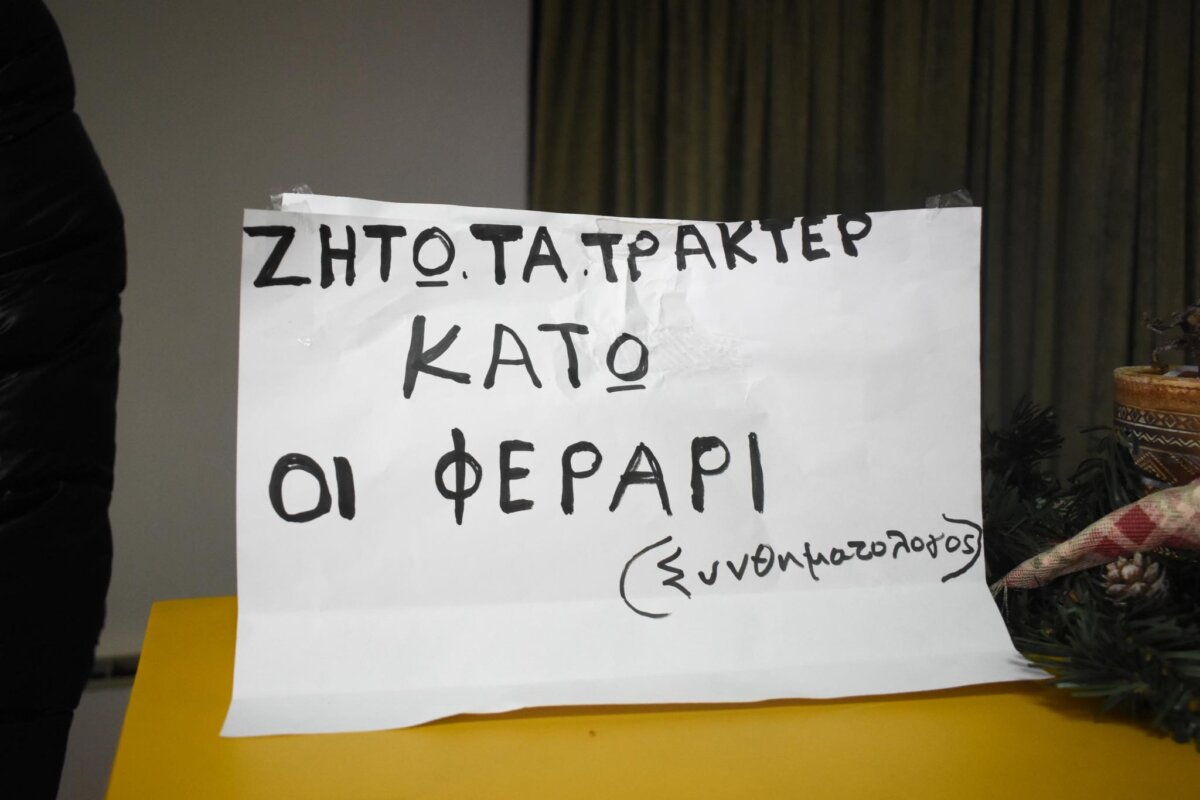 «Τα αιτήματά μας είναι γνωστά στην κυβέρνηση: Μείωση του κόστους παραγωγής, αφορολόγητο στο πετρέλαιο, πλαφόν στα τιμολόγια τους ρεύματος στα 7 λεπτά/ Kwh, κατώτατες εγγυημένες τιμές, επίλυση του προβλήματος που ακούει στο όνομα ΟΠΕΚΕΠΕ και αλλαγή στρατηγικής στο θέμα της ευλογιάς των αιγοπροβάτων που αφανίζει την κτηνοτροφία μας είναι τα κυριότερα και αν χρειαστεί θα τους ξαναστείλουμε», διαμηνύουν οι αγρότες, ενώ οι αποφάσεις της σύσκεψης θα γίνουν γνωστές εντός των επόμενων ωρών.