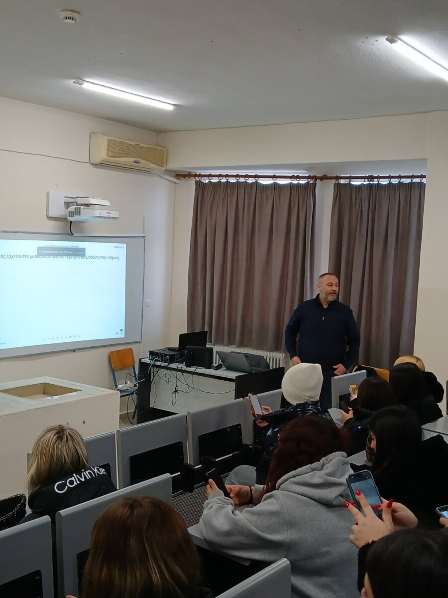 Ομιλητής ήταν ο Αναπληρωτής Καθηγητής Ιατρικής Πληροφορικής του Τμήματος Ιατρικής του Πανεπιστημίου Θεσσαλίας κ. Παναγιώτης Παπαδημητρούλας και συμμετείχαν μαθητές και μαθήτριες ειδικοτήτων Υγείας και Πληροφορικής της Β’ και Γ’ τάξης. Η διάλεξη κέντρισε το ενδιαφέρον όλων, διότι πέρα από την έννοια της Τεχνητής Νοημοσύνης ο ομιλητής παρέθεσε παραδείγματα χρήσης εφαρμογών σε ιατρικά περιστατικά.
