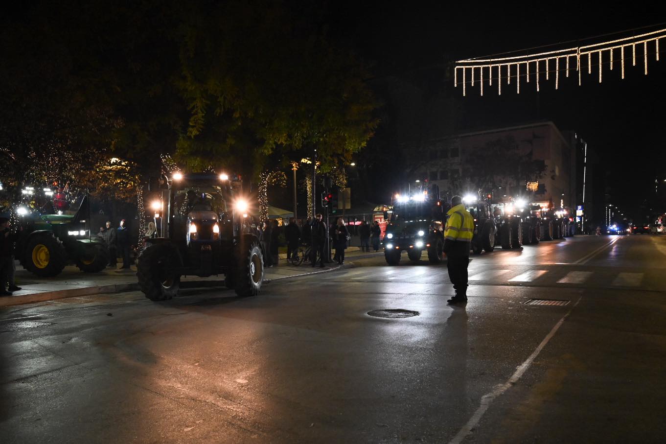 Δεκάδες αγρότες έδωσαν δυναμικό «παρών», παρατάσσοντας τα τρακτέρ τους στην πλατεία, ενώ το σύνθημα της ημέρας ήταν σαφές: «Όχι στην ψήφιση του προϋπολογισμού».