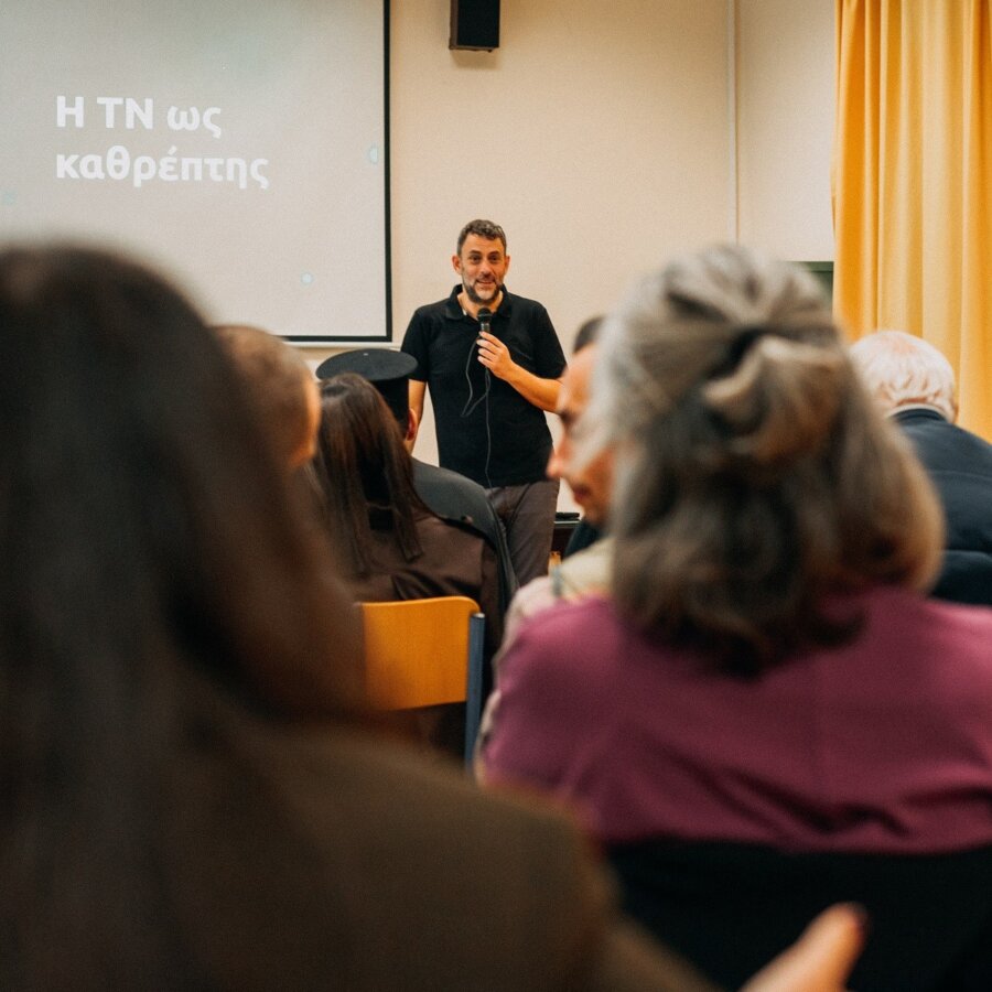Μετά την εισήγηση ακολούθησε ανοιχτός διάλογος με το κοινό, με ερωτήσεις και παρεμβάσεις που ανέδειξαν το έντονο ενδιαφέρον αλλά και τον προβληματισμό γύρω από τον ρόλο της Τεχνητής Νοημοσύνης στην εκπαίδευση, την εργασία και την κοινωνία συνολικά.