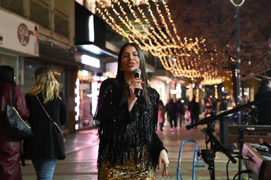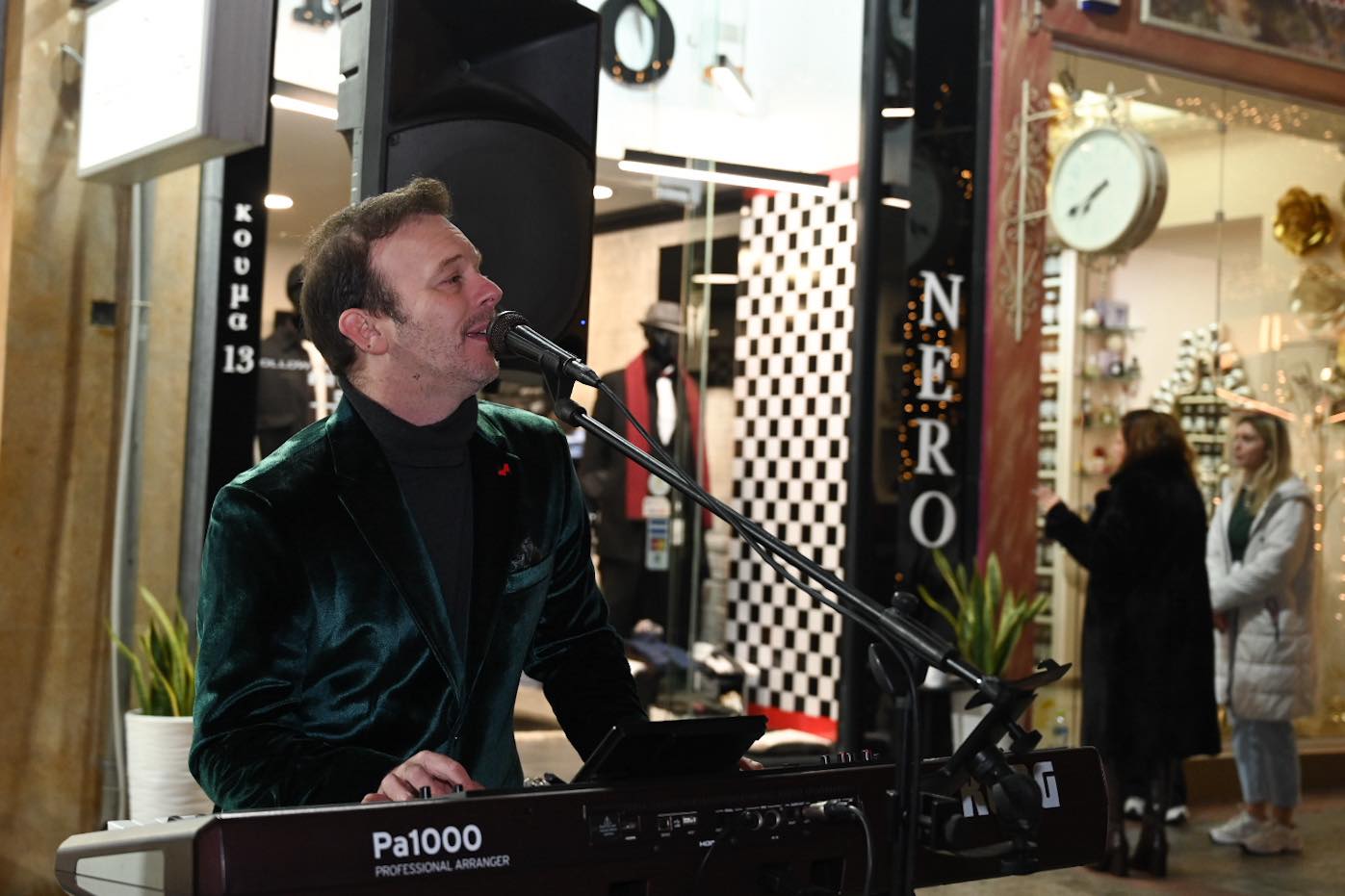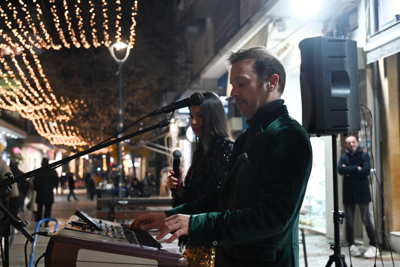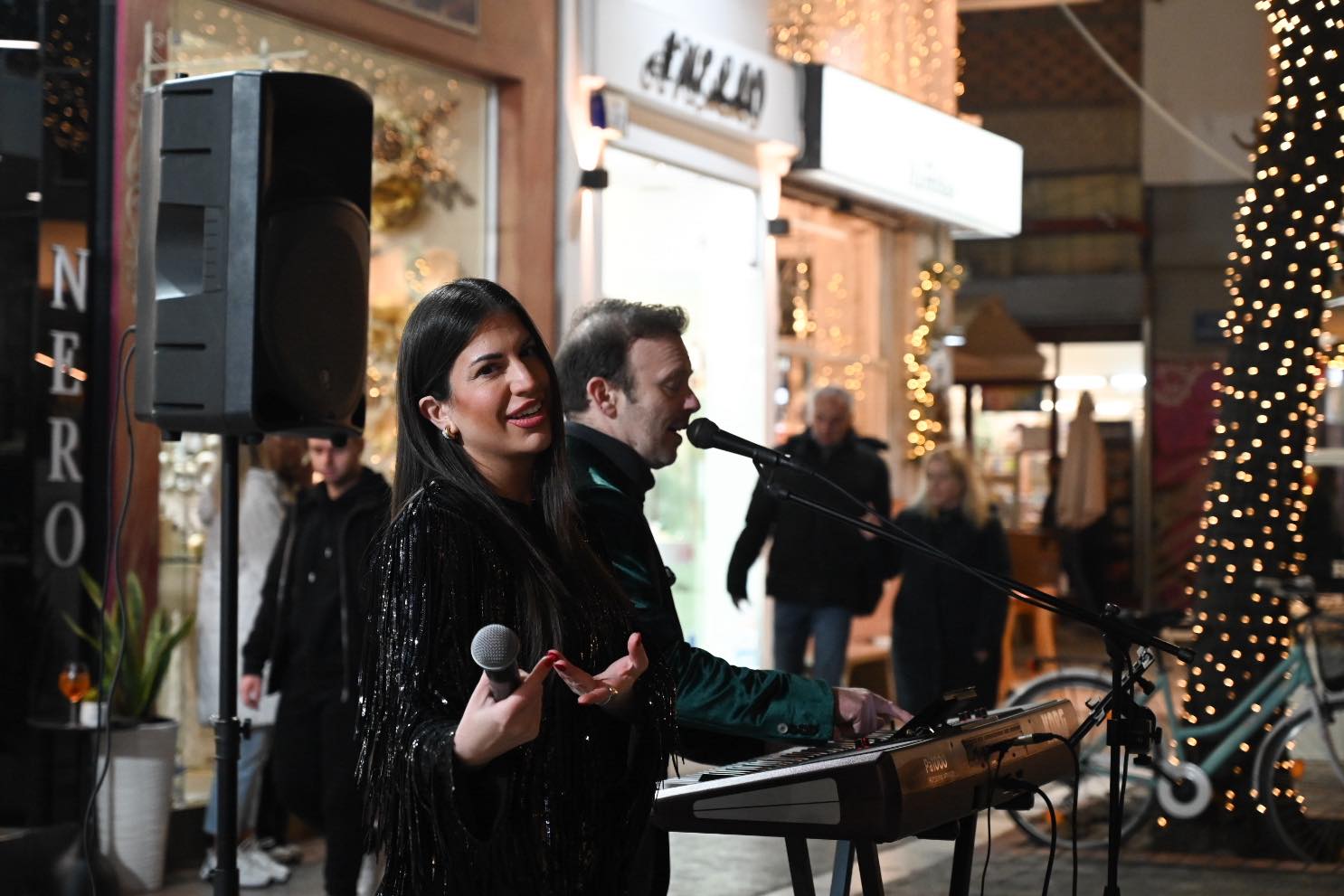 Το απόγευμα της Τετάρτης οι Λαρισαίοι απόλαυσαν την εορταστική συναυλία ντουέτου Κ. Πάλλη & Γ. Αστρίτη στον πεζόδρομο της Κούμα.