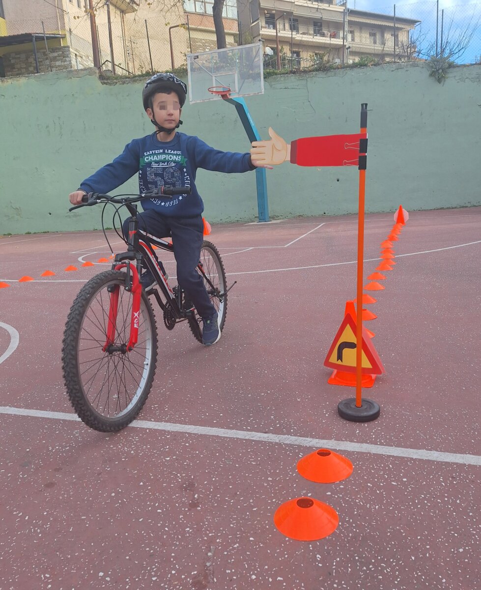 Στη συνέχεια, στο προαύλιο του σχολείου, οι μαθητές συμμετείχαν σε πρακτική εξάσκηση ανά τμήμα, χρησιμοποιώντας τα ποδήλατα και τα κράνη τους. Υπό την καθοδήγηση της υπεύθυνης υλοποίησης του προγράμματος, καθηγήτριας Φυσικής Αγωγής κ. Εύης Ευαγγέλου, εξασκήθηκαν σε βασικές δεξιότητες, μαθαίνοντας πώς να κινούνται με ασφάλεια και προσοχή .