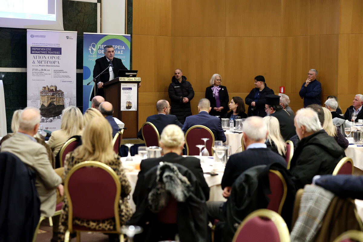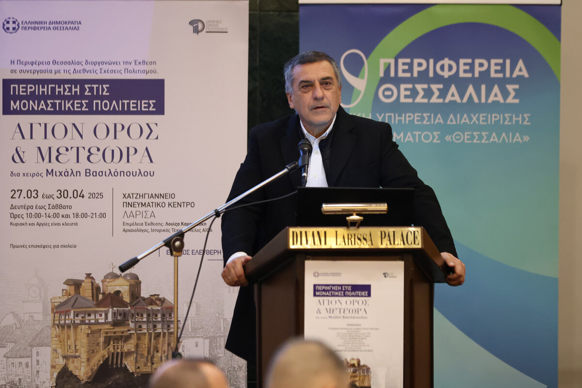 Η Περιφέρεια Θεσσαλίας, σε συνεργασία με τις Διεθνείς Σχέσεις Πολιτισμού, διοργάνωσε το βράδυ της Τρίτης στο ξενοδοχείο Divani Palace την τελική εκδήλωση, με κεντρικό ομιλητή τον κ. Αλκιβιάδη Στεφανή, Διοικητή του Αγίου Όρους, τ. Υπουργό Εθνικής Άμυνας, Στρατηγό ε.α. και Επίτιμο Αρχηγό ΓΕΣ, ο οποίος ανέπτυξε το θέμα: «Θρησκευτική διπλωματία και Άγιο Όρος».
