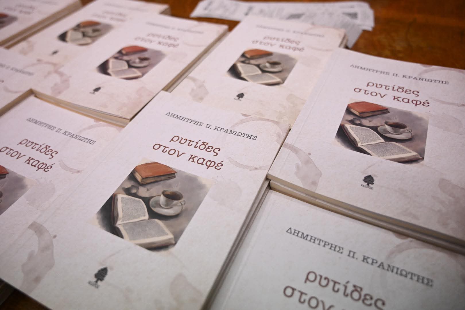 Με ιδιαίτερη επιτυχία πραγματοποιήθηκε απόψε, στο Γαλλικό Ινστιτούτο Λάρισας, η παρουσίαση της νέας ποιητικής συλλογής του Δημήτρη Π. Κρανιώτη, ιατρού ειδικού παθολόγου, με τίτλο «Ρυτίδες στον καφέ».